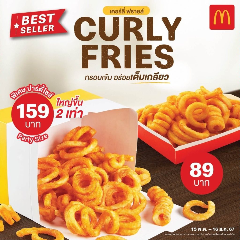 แมคโดนัลด์ ส่ง 2 เมนูเด็ด โดนใจคนรักแมคโดนัลด์ เริ่มด้วยความอร่อยที่คนรักเนื้อต้องไม่พลาด ‘ทรัฟเฟิล บีฟ เบอร์เกอร์’ เบอร์เกอร์เนื้อเน้นๆ อร่อยฉ่ำเต็มคำ จุใจด้วยเนื้อส่งตรงจากออสเตรเลียที่ชิ้นใหญ่ขึ้น 2.5 เท่า อร่อยเข้ากันลงตัวกับซอสทรัฟเฟิลมาโยสุดพรีเมี่ยม พร้อมกับผักกาดแก้วสดกรอบ ขนมปังนุ่มๆ ประกบด้วยเชดด้าชีสเยิ้มๆ ในราคาเริ่มต้นเพียงชิ้นละ 159 บาท หรือ เลือกอิ่มแบบครบชุด พร้อมเฟรนช์ฟรายส์ขนาดกลาง และโค้ก 16 ออนซ์ ในราคาเริ่มต้นเพียงชุดละ 199 บาท  อีกหนึ่งเมนูฮิตที่กลับมาให้ฟินกันอีกครั้ง เคี้ยวเพลินจนห้ามใจไม่อยู่ ‘เคอร์ลี่ ฟรายส์’ มันฝรั่งรูปแบบเกลียว รสชาติอร่อยเข้มข้น กรอบนอก นุ่มใน ราคาเริ่มต้น 89 บาท หรือจะอัพเป็นขนาดปาร์ตี้ไซส์ จุใจ 2 เท่า ในราคาเริ่มต้นเพียง 159 บาท