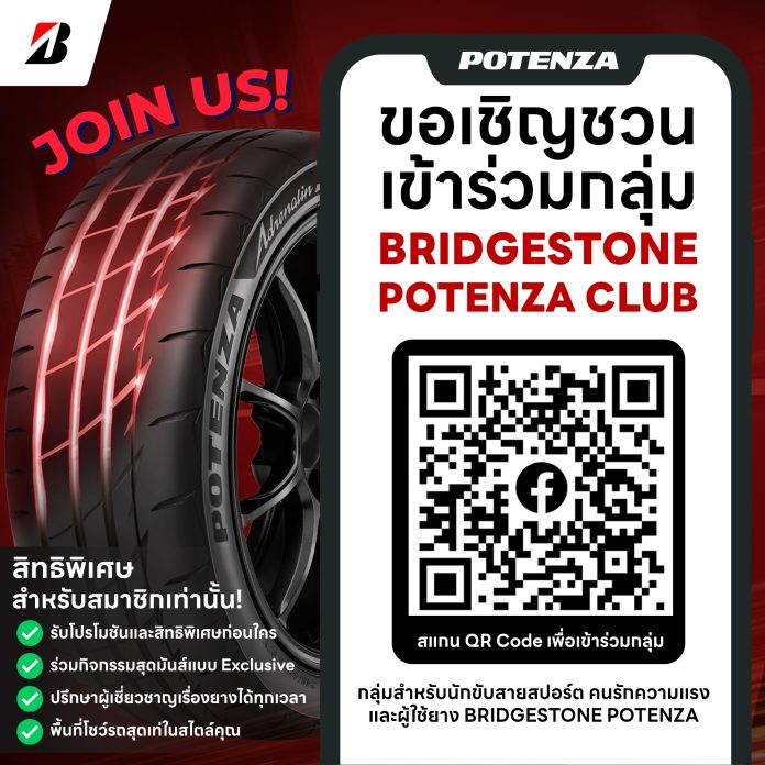 เข้าร่วมเป็นส่วนหนึ่งของคอมมูนิตี้คนรัก BRIDGESTONE POTENZA ได้ที่ Facebook Group: BRIDGESTONE POTENZA CLUB https://www.facebook.com/groups/potenzaclub