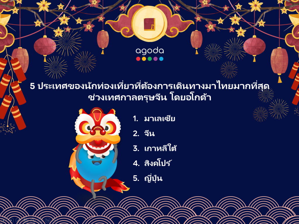 คุณเอนริก คาซาลส์, Associate Vice President Southeast Asia, อโกด้า กล่าวว่า “เทศกาลตรุษจีนเป็นอีกหนึ่งช่วงเวลาสำคัญที่ผู้คนออกไปท่องเที่ยว และปีนี้ก็ไม่ต่างกัน ตั้งแต่ปี 2019 มา โรงแรมและจุดหมายปลายทางต่าง ๆ ก็สร้างตัวเลือกให้ตัวเองน่าสนใจมากขึ้นในสายตานักท่องเที่ยวที่เป็นกลุ่มเป้าหมาย เช่น การไม่ต้องขอวีซ่า และสิ่งจูงใจอื่น ๆ ซึ่งนั่นทำให้พวกเขาไม่ต้องพึ่งพานักท่องเที่ยวจากแค่ประเทศเดียว และดึงดูดนักท่องเที่ยวจากประเทศอื่นได้ด้วยในขณะเดียวกัน แต่ในปีนี้อุตสาหกรรมการท่องเที่ยวนั้นตั้งตารอต้อนรับนักท่องเที่ยวชาวจีนมากขึ้นแน่นอน”