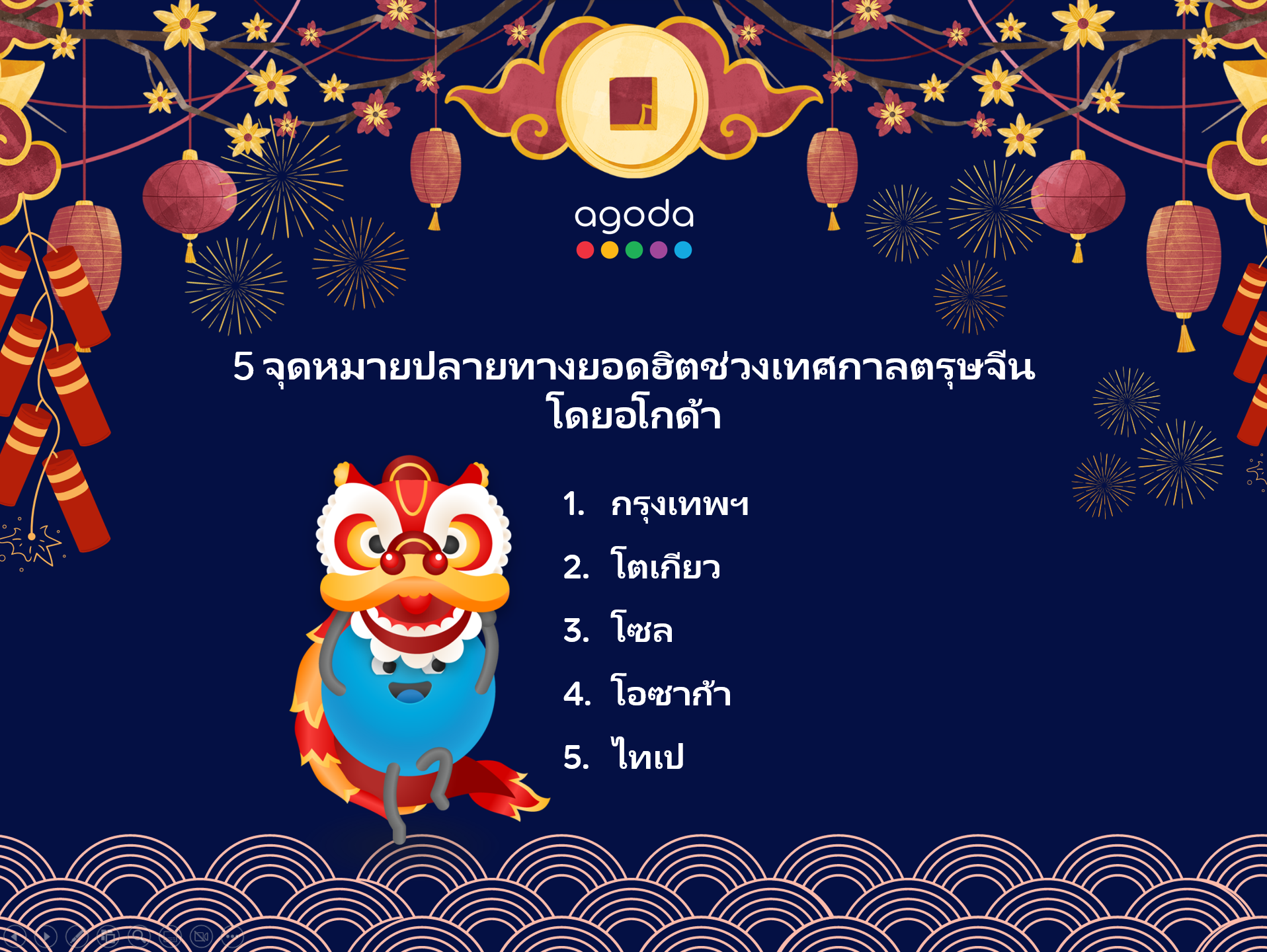 แพลตฟอร์มของอโกด้ามีที่พักมากกว่า 3.9 ล้านแห่ง ตั๋วเครื่องบิน และกิจกรรมท่องเที่ยวต่าง ๆ มากมาย ตอบโจทย์ความต้องการด้านการเดินทางท่องเที่ยวที่เปลี่ยนแปลงไปของผู้คนได้อย่างดีเยี่ยม อโกด้าพร้อมมอบประสบการณ์การท่องเที่ยวที่ราบรื่นให้นักท่องเที่ยวทุกคนช่วงเทศกาลตรุษจีนปีนี้ ไม่ว่าจะเป็นในไทย หรือประเทศอื่น ๆ