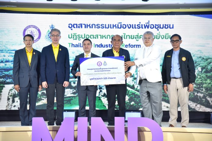 กระทรวงอุตสาหกรรม โดยกรมอุตสาหกรรมพื้นฐานและการเหมืองแร่ (กพร.) มอบของขวัญปีใหม่โดยจัดสรร “เงินผลประโยชน์พิเศษแก่รัฐ” กว่า 525 ล้านบาท เพื่อพัฒนาชุมชนรอบเหมือง 187 แห่ง ตามแนวคิด “เหมืองแร่เพื่อชุมชน” ยกระดับมาตรฐานอุตสาหกรรมเหมืองแร่มุ่งสู่ความยั่งยืนตามนโยบายปฏิรูปอุตสาหกรรมไทย หรือ Industrial Reform ในมิติการสร้างอุตสาหกรรมใหม่ที่เป็นมิตรต่อสิ่งแวดล้อม และเติบโตไปพร้อมกับชุมชน ทั้งนี้ ต่อเนื่องจากการจัดสรรเงินฯ ในปีนี้ กพร. ยังมีแผนที่จะจัดสรรเงินกระจายสู่ชุมชนที่อยู่โดยรอบการประกอบการเหมืองแร่เป็นประจำทุกปี โดยตั้งเป้าหมายในการจัดสรรเงิน ให้องค์กรปกครองส่วนท้องถิ่นปีละไม่น้อยกว่า 100 ล้านบาท และวางมาตรการในการสร้างความยั่งยืนให้กับชุมชนรอบเหมืองแร่อย่างเข้มข้น