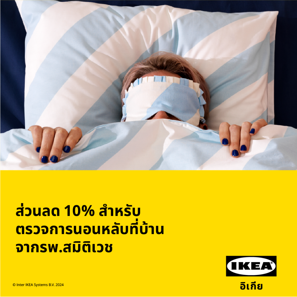 • ส่วนลด 10% บริการตรวจการนอนหลับที่บ้านจากโรงพยาบาลสมิติเวช เพียงแสดงบัตรสมาชิก IKEA Family เพื่อติดต่อเข้ารับบริการ