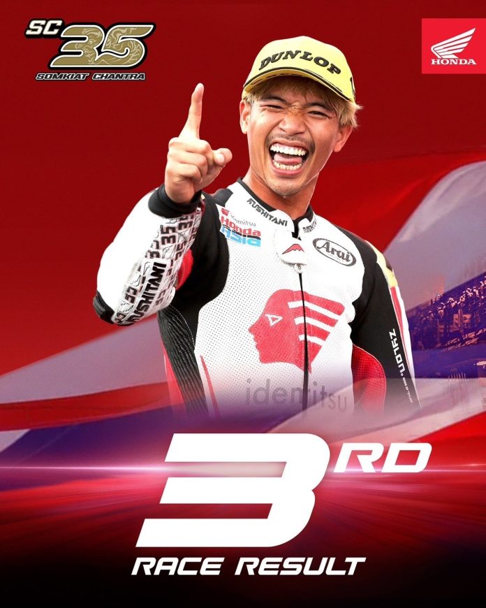 “ก้อง” สมเกียรติ จันทรา ยอดนักบิดไทยจากโครงการ “ฮอนด้า เรซ ทู เดอะ ดรีม” ทำสำเร็จ! ทะยานคว้าโพเดียมโฮมเรซต่อหน้าแฟนความเร็วชาวไทยนับแสนที่ สนามช้าง อินเตอร์เนชั่นแนล เซอร์กิต จ.บุรีรัมย์ หลังบิดคว้าอันดับ 3 ในศึกโมโตทู เวิลด์ แชมเปี้ยนชิพ 2023 สนาม 17 รายการ โออาร์ ไทยแลนด์ กรังด์ปรีซ์ เมื่อวันอาทิตย์ที่ผ่านมา