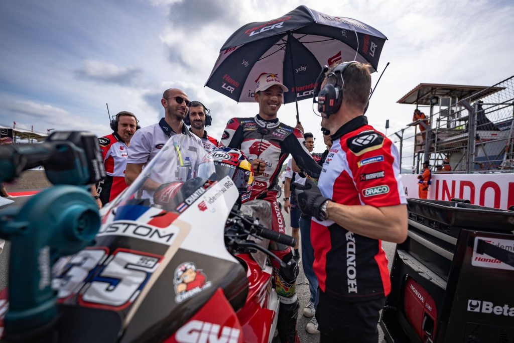 ขณะที่ “ก้อง” สมเกียรติ จันทรา นักบิดขวัญใจชาวไทยเจ้าของหมายเลข 35 จาก อิเดมิตสึ ฮอนด้า แอลซีอาร์ ที่เจอปัญหา “การยึดเกาะ” ของยางเล่นงานในวันเสาร์ ได้เริ่มเกมจากกริดที่ 19 ก่อนสร้างผลงานยอดเยี่ยมจะขยับขึ้นเข้าเส้นชัยในอันดับ 13 ตามหลังผู้ชนะ 48.035 วินาที เก็บเพิ่มอีก 3 แต้ม ส่วน “โยฮันน์ ซาร์โก” ทีมเมทชาวฝรั่งเศสหมายเลข 5 จบเรซอันดับ 12 ตามหลัง 27.597 วินาที