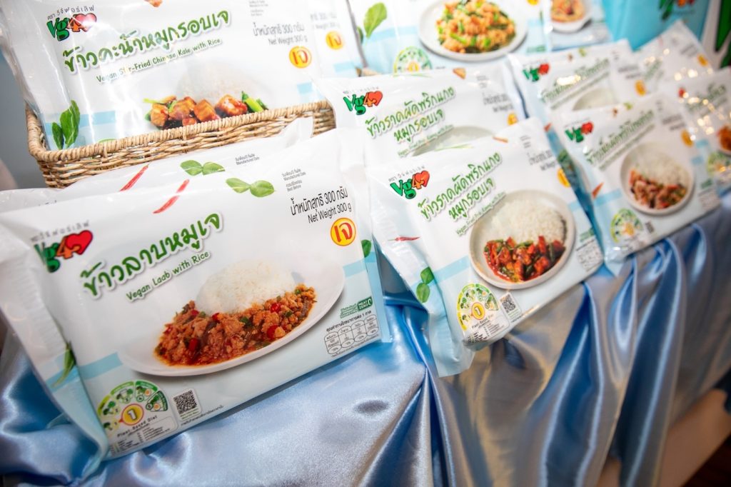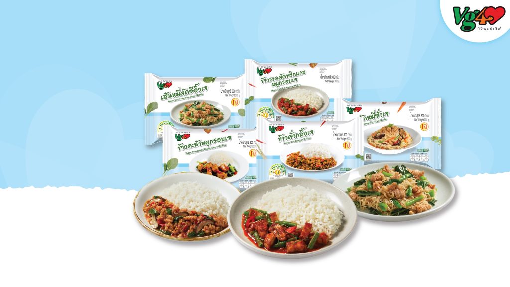 “วีจีฟอร์เลิฟ” (VG for Love) นำเสนอ 5 เมนูไฮไลต์ที่รังสรรค์ให้มีความอร่อย ปลอดภัย และให้คุณค่าทางโภชนาการ อาทิ ผัดหมี่ซั่ว เมนูมงคลเส้นนุ่ม รสชาติกลมกล่อม ข้าวกะเพราหมูกรอบเจ เมนูยอดฮิตที่ได้รสสัมผัสกรุบกรอบและรสเผ็ดร้อนถึงใจ ข้าวคะน้าหมูกรอบเจ ความลงตัวของผักสดและโปรตีนพืชคุณภาพเยี่ยม ข้าวราดผัดพริกแกงหมูกรอบเจ หอมกลิ่นเครื่องแกงไทยแท้เข้มข้นทุกคำ และข้าวลาบหมูเจแซ่บถึงใจ สไตล์อีสานแท้ๆ แต่ไขมันต่ำและโปรตีนสูง เพื่อให้การทาน plant-based เป็นเรื่องง่ายและอร่อยสำหรับทุกคน