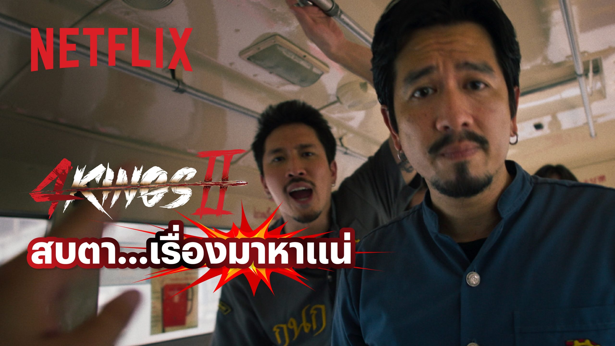 เมื่อเรื่องราวของศึกการล้างแค้นระหว่าง 2 สถาบันสุดเข้มข้น ดุดัน มันส์เข้าเส้นได้ฤกษ์ประกาศศักดาถึง Netflix กับ 4 Kings II ภาพยนตร์ไทยแนวแอ็กชันดราม่าที่ประสบความสำเร็จอย่างถล่มทลาย กวาดรายได้กว่า 240 ล้านบาททั่วประเทศ และได้สร้างสีสันให้กับอุตสาหกรรมภาพยนตร์ไทยในปีที่ผ่านมา จึงเป็นเครื่องพิสูจน์ว่า 4 Kings II ได้ครองใจคนไทยตั้งแต่วัยรุ่นไปจนถึงวัยเก๋า การมาเยือนของเหล่าชาวแก๊งอาชีวะถึงถิ่นในครั้งนี้ จึงต้องมาอย่างสมศักดิ์ศรี โดยพาวิดีโอสุดเดือดทะลุปรอทมาปลุกความเร้าใจก่อนไปรับชมภาพยนตร์กันแบบเต็มๆ นำโดยหัวโจกอย่าง แหลม-สมพล รุ่งพานิชย์ (รับบท บ่าง) บิ๊ก-อุกฤษ วิลลีย์บรอด ดอนกาเบรียล (รับบท ยาท) ทู-สิราษฎร์ อินทรโชติ (รับบท เอก) และ เฟย-ภัทร เอกแสงกุล (รับบท เค) มาต้อนรับเหล่าผู้ชมแบบดิบๆ กับซีนแอ็กชันสุดเดือดบนรถเมล์ นอกจากนี้ รอพบกับสมาชิกชาวแก๊งเพิ่มเติมอีกมากมาย อาทิ จี๋-สุทธิรักษ์ ทรัพย์วิจิตร แม็กซ์-ณัฐวุฒิ เจนมานะ เบนจามิน โจเซฟ วาร์นี และ ท็อป-ทศพล หมายสุข ที่พร้อมบวกแบบเต็มแม็กซ์