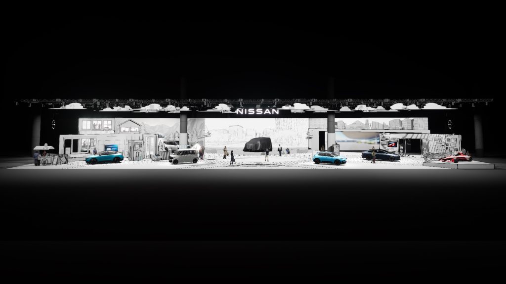อัลฟอนโซ อัลบายซ่า รองประธานอาวุโสด้านการออกแบบระดับโลกของนิสสัน(Alfonso Albaisa, Corporate Executive of Global Design, Nissan Motor) กล่าวว่า “ในฐานะนักออกแบบ เราค้นพบแรงบันดาลใจอันลึกซึ้งจากวัฒนธรรมสร้างสรรค์อันมีชีวิตชีวาของญี่ปุ่น บูธในปีนี้คือการเฉลิมฉลองจิตวิญญาณนั้น ผสมผสานศิลปะ และนวัตกรรม เพื่อให้ผู้เข้าชมได้สัมผัสกับอนาคตแห่งการขับเคลื่อน แม้แนวคิดด้านภาพจะเป็นตัวกำหนดฉาก แต่แก่นแท้ที่แท้จริงจะมีชีวิตชีวาขึ้นเมื่อผู้เข้าชมก้าวเข้ามาภายใน พร้อมนำสีสัน และพลังของตนเองมาสร้างสรรค์ความแตกต่างอันทรงพลังบนฉากหลัง”