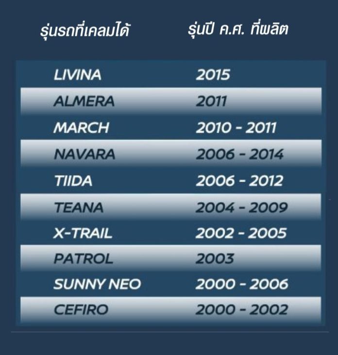 สำหรับลูกค้าที่เข้าข่าย กรุณาติดต่อผู้จำหน่าย หรือนิสสัน คอลเซ็นเตอร์ เพื่อนัดหมายเข้ารับบริการโดยเร็ว เพื่อความปลอดภัยในการขับขี่ โดยลูกค้าที่อยู่ในเขตกรุงเทพฯและปริมณฑล ติดต่อที่หมายหมายเลข 02 401 9600 และสำหรับพื้นที่ต่างจังหวัด ติดต่อที่หมายเลข 1-800-900-500 ตลอด 24 ชั่วโมง