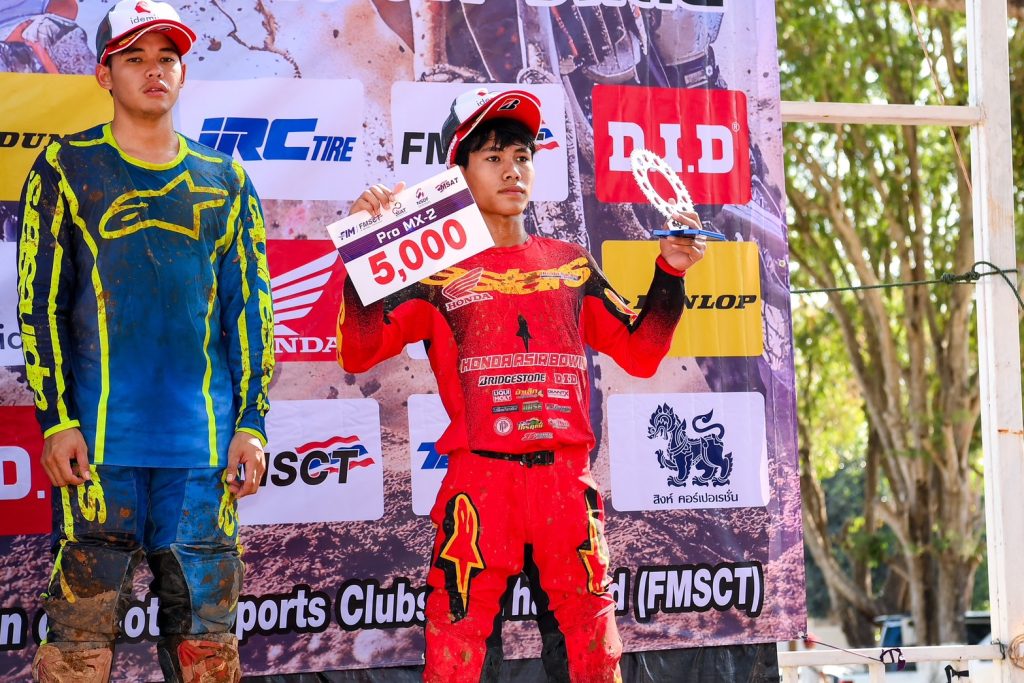 ขณะที่นักบิดฮอนด้าในการแข่งขันรุ่น MX-2 Pro (250cc.) สามารถเปิดซีซั่นด้วยผลงานระดับท็อปเช่นกัน กับรถแข่ง Honda CRF250R นำโดย “คิ้วท์” พันธกานต์ บุญชาลี หมายเลข 17 สังกัดทีม Honda Asia Bowin Idemitsu S Motor ประเดิมสนามแรกด้วยการคว้าท็อป 4 มาครอง ตามมาด้วย “ไตรตั้น” เตโชดม มีแสง หมายเลข 193 สังกัดทีม Honda Racing Thailand Idemitsu Wannalak Motorsport ตามเข้าเส้นชัยมาเป็นอันดับที่ 6