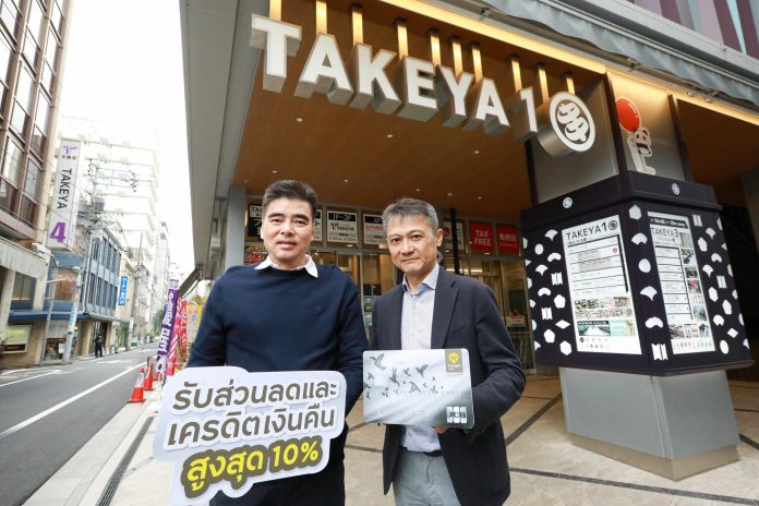 บัตรเครดิต กรุงศรี นำโดย นายสมหวัง โตรักตระกูล (ซ้าย) กรรมการผู้จัดการ บริษัท บัตรกรุงศรีอยุธยา จำกัด ร่วมกับ เจซีบี นำโดย มร.โย อิมานิชิ ผู้อำนวยการอาวุโส (ขวา) ฝ่ายวางแผนธุรกิจระดับโลก บริษัท เจซีบี อินเตอร์เนชันแนล จำกัด ชวนเที่ยวสนุก ช้อปคุ้มที่ญี่ปุ่น มอบสิทธิพิเศษสำหรับสมาชิกบัตรเครดิต กรุงศรี เจซีบี แพลทินัม และบัตรเครดิตสยาม ทาคาชิมายะ เจซีบี รับเครดิตเงินคืนสูงสุด 10% จากยอดใช้จ่ายสะสมผ่านบัตรด้วยสกุลเงินเยนตามเงื่อนไขที่ร้านค้าในญี่ปุ่นที่ร่วมรายการ (เครดิตเงินคืนสูงสุด 5,000 เยน ต่อหมายเลขบัตรเครดิต ตลอดรายการ) พิเศษ! รับส่วนลด 10% ที่ห้างทาเคยะเมื่อใช้จ่ายผ่านบัตร 5,000 เยนขึ้นไปต่อเซลล์สลิป (รับส่วนลดสูงสุด 10,000 เยน) ตั้งแต่ 1 กุมภาพันธ์ 2567 – 30 เมษายน 2567 (เงื่อนไขเป็นไปตามที่กำหนด) ข้อมูลเพิ่มเติม www.krungsricard.com/th/promotion/takeya