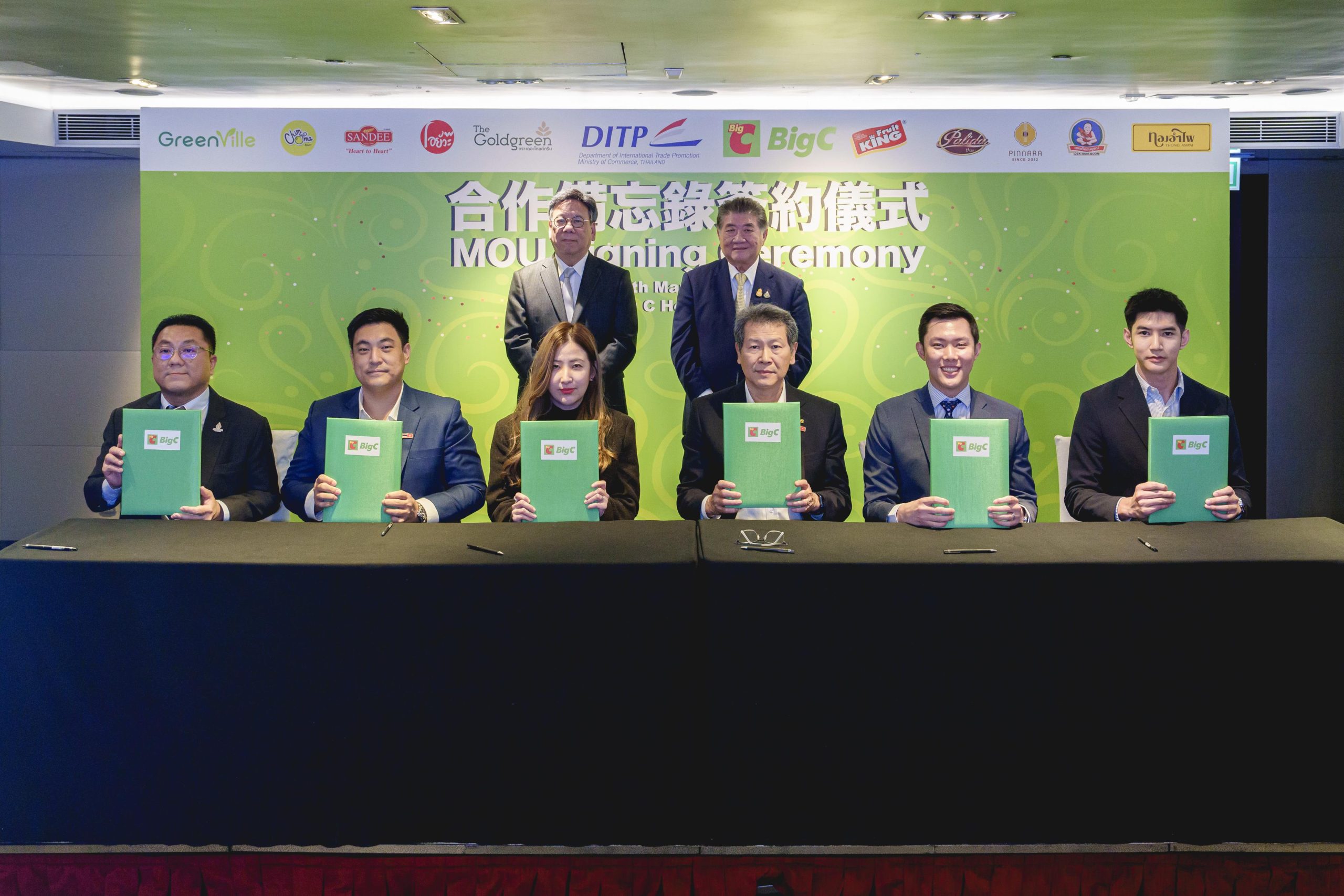 นายอัศวิน – นางฐาปณี เตชะเจริญวิกุล ประธานเจ้าหน้าที่บริหารและกรรมการผู้จัดการใหญ่ รองประธานกรรมการบริหาร บริษัท บิ๊กซี ซูเปอร์เซ็นเตอร์ จำกัด (มหาชน) พร้อมด้วยคณะผู้บริหาร ผู้ประกอบการไทย 10 บริษัทให้การต้อนรับ นายภูมิธรรม เวชยชัย รองนายกรัฐมนตรีและรัฐมนตรีว่าการกระทรวงพาณิชย์ นายแอลเจอร์นอน เยา (Mr. Algernon Yau) รัฐมนตรีว่าการกระทรวงพาณิชย์และการพัฒนาเศรษฐกิจฮ่องกงในโอกาสร่วมเป็นสักขีพยานในพิธีลงนามบันทึกความเข้าใจ (MoU) ระหว่าง บิ๊กซี ฮ่องกง กับ ผู้ส่งออกไทย 10 บริษัท วัตถุประสงค์เพื่อการขยายโอกาสการส่งออกสินค้าอุปโภคบริโภคของไทย โดยเฉพาะจากผู้ประกอบการรายย่อย SMEs สินค้า OTOP และสินค้าเกษตรแปรรูป รวมทั้งผู้ประกอบการที่ได้รับการคัดเลือกและสนับสนุนจากกระทรวงพาณิชย์ อาทิ สินค้าที่ได้รับตราสัญลักษณ์ Thailand Trust Mark และ Thai SELECT บนผลิตภัณฑ์ ได้มีโอกาสขยายการส่งออกสู่ตลาดฮ่องกง ณ บิ๊กซี ฮ่องกง สาขา Mira Place 2 เมื่อเร็ว ๆ นี้