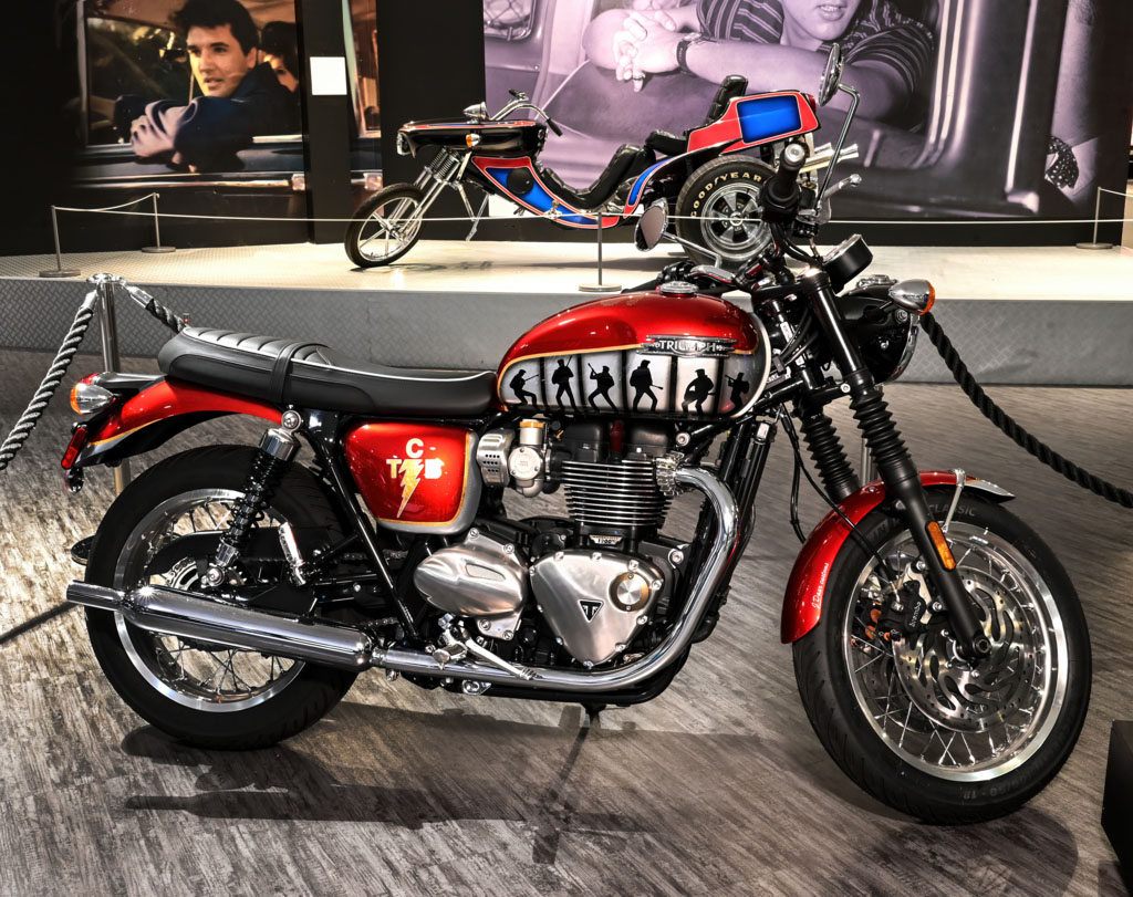 รถจักรยานยนต์รุ่นเรือธง T120 โมเดลใหม่ล่าสุดนี้ ได้รับการคัสตอมโดย J Daar ศิลปินนักแต่งคัสตอมมือรางวัล โดยได้แรงบันดาลใจมาจากรถจักรยานยนต์ไทรอัมพ์รุ่นดั้งเดิมอย่าง Memphis Mafia และ Bonneville Desert Sled ที่ปรากฎในภาพยนตร์เรื่อง Stay Away, Joe ในปี 1968 นอกจากนี้ยังได้รับอิทธิพลจากลุคสุดไอคอนนิกของเอลวิส ในคอนเสิร์ตคัมแบคครั้งพิเศษในปี 1968 ด้วยการใช้สีแดง เงิน และทอง