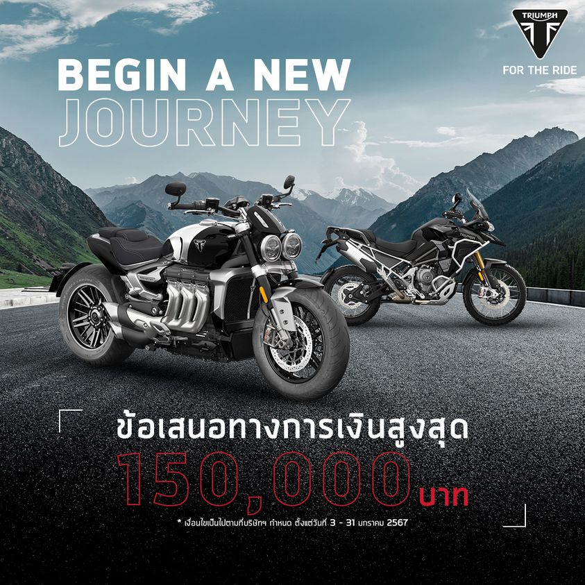 “ไทรอัมพ์ มอเตอร์ไซเคิลส์” ชวนเปิดประสบการณ์การขับขี่ และการผจญภัยครั้งใหม่รับปีมังกรด้วยโปรโมชันข้อเสนอทางการเงินสุดพิเศษ สำหรับรถจักรยานยนต์รุ่นที่ร่วมรายการ โดยในกลุ่มเซกเมนต์ โมเดิร์น คลาสสิก รับข้อเสนอทางการเงินสูงสุด 40,000 บาท กลุ่มเซกเมนต์โรสเตอร์ และร็อกเก็ต 3 รับข้อเสนอทางการเงินสูงสุด 100,000 บาท และกลุ่มเซกเมนต์ แอดเวนเจอร์ รับข้อเสนอทางการเงินสูงสุด 150,000 บาท ซึ่งทุกรุ่นยังมาพร้อมบริการช่วยเหลือฉุกเฉินบนท้องถนนตลอด 24 ชั่วโมง (Triumph Roadside Assistance) เป็นระยะเวลา 24 เดือน และการรับประกันคุณภาพของรถสูงสุดถึง 36 เดือน ไม่จำกัดระยะทาง โดยผู้สนใจสามารถสอบถามข้อมูลโปรโมชันเพิ่มเติม รวมถึงสามารถดลองขี่รถจักรยานยนต์ไทรอัมพ์รุ่นที่สนใจได้ที่โชว์รูมไทรอัมพ์ 12 แห่งทั่วประเทศ ตั้งแต่วันที่ 3 – 31 มกราคม 2567 เท่านั้น