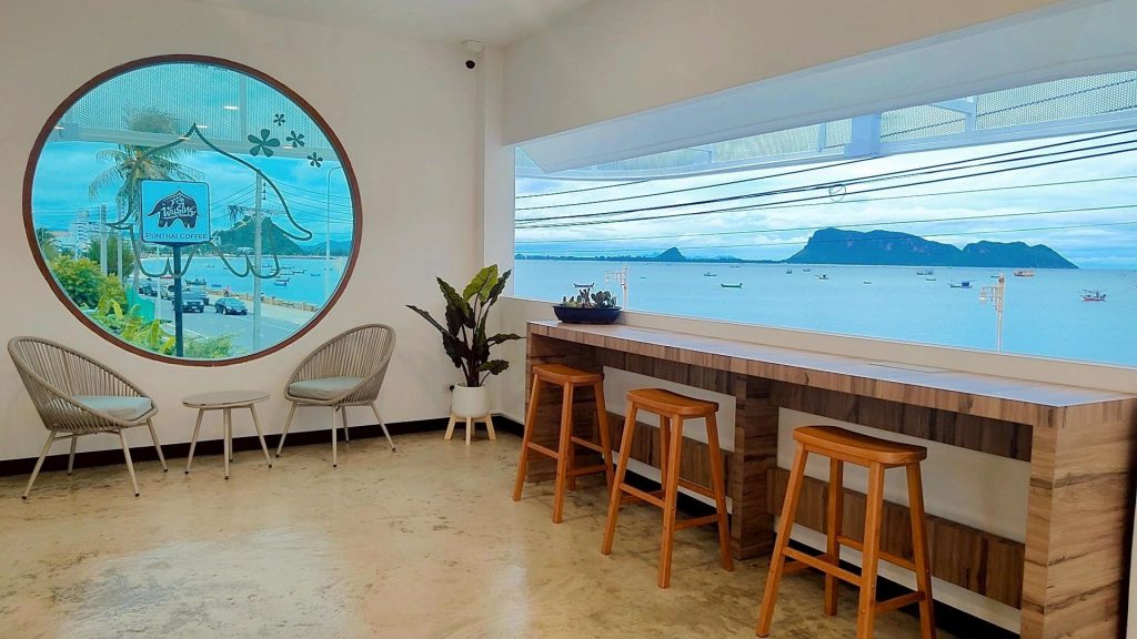 - สาขาเลียบหาดประจวบฯ: จิบกาแฟพร้อมวิวทะเลสุดชิลล์ เปลี่ยนการพักรถให้กลายเป็นการพักผ่อนชื่นชมน้ำใสและท้องฟ้าสีคราม