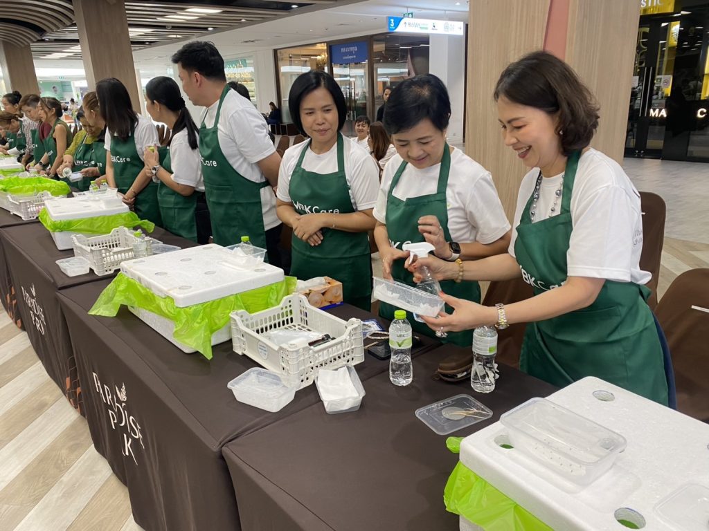 โดยกิจกรรม “กล่องสุข ปลูกผัก (Growing Green)” ได้รับเกียรติจาก นายเรืองศักดิ์ สายสิงห์ทอง ผู้อำนวยการสำนักงานเขตประเวศ พร้อมด้วยผู้บริหารศูนย์การค้าในเครือเอ็ม บี เค นำโดย นางสาวจรูญรัตน์ สาลี กรรมการผู้จัดการ บริษัท พาราไดซ์ พาร์ค จำกัด นางสาววราภรณ์ ตติปาณิเทพ กรรมการผู้จัดการ บริษัท เดอะไนน์ ติวานนท์ จำกัด นายเอกกร อัมบัส กรรมการผู้จัดการ บริษัท เดอะไนน์ เซ็นเตอร์ จำกัด และ นางสาวศตกมล วรกุล ผู้อำนวยการอาวุโสฝ่ายสื่อสารองค์กร บริษัท เอ็ม บี เค จำกัด (มหาชน) ร่วมเปิดงาน ณ ชั้น 3 โซน บิ้วตี้ แอนด์ เฮลธ์ ศูนย์การค้าพาราไดซ์ พาร์ค
