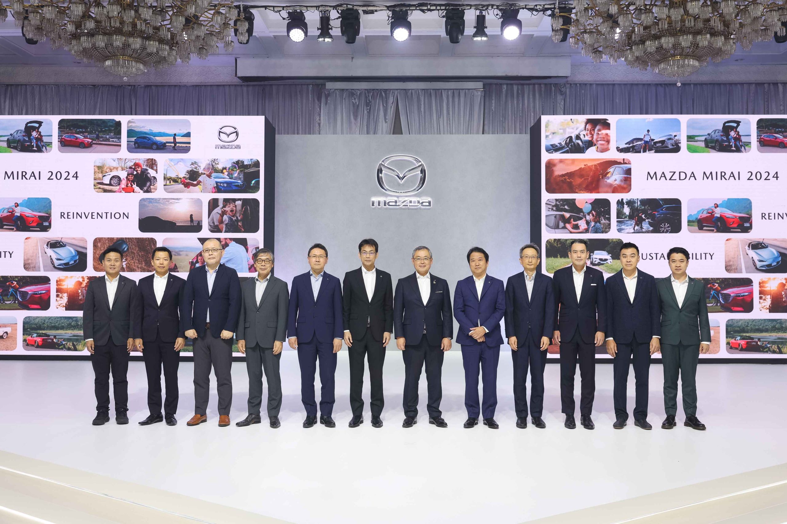 การประชุมผู้จำหน่ายประจำปี หรือ Mazda Mirai 2024 มาสด้าได้นำเสนอนโยบายและแผนธุรกิจระยะสั้น ระยะกลาง และระยะยาว ทำให้ผู้จำหน่ายเห็นทิศทางที่ชัดเจนมากยิ่งขึ้น สร้างความเชื่อมั่นและเกิดความร่วมมือเป็นอันหนึ่งอันเดียวกันมุ่งสู่เป้าหมายร่วมกัน ภายใต้แนวคิด Reinvent for a Sustainable Future ผ่าน 3 คีย์เวิร์ดสำคัญ คือ Reinvention หมายถึงการปรับและเปลี่ยนวิธีคิดการทำงานเพื่อให้ทันกับสถานการณ์โลกธุรกิจในปัจจุบันที่กำลังเปลี่ยนแปลงไปอย่างรวดเร็ว Sustainability คือการเติบโตอย่างแข็งแกร่งและยั่งยืน ไม่เพียงในแง่ของการดำเนินธุรกิจเท่านั้น แต่รวมถึงผู้คนที่เกี่ยวข้อง เพื่อให้โลกของเรายังคงสวยงาม เพื่อสร้างสรรค์สังคมให้น่าอยู่ยิ่งขึ้น และ Future คืออนาคตที่พวกเราจะก้าวเดินไปพร้อมกัน ระหว่าง มาสด้า เซลส์ ประเทศไทย และผู้จำหน่าย ประสานมือสร้างพันธกิจร่วมกัน โดยมีเป้าหมายสูงสุดคือการส่งมอบความสุขให้กับลูกค้ามาสด้าตลอดไป