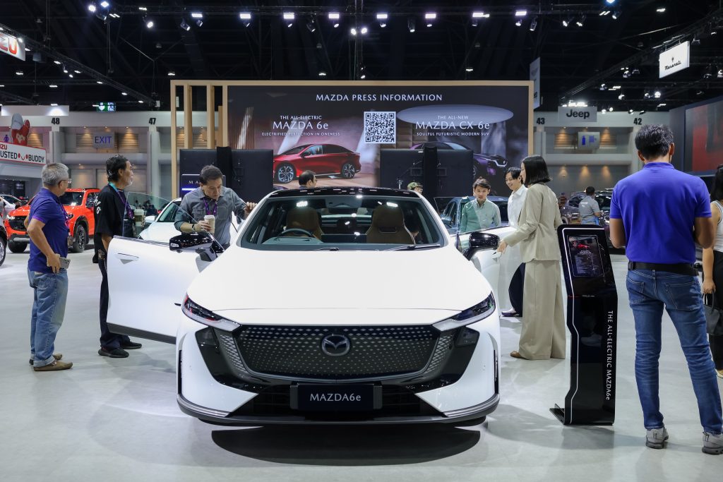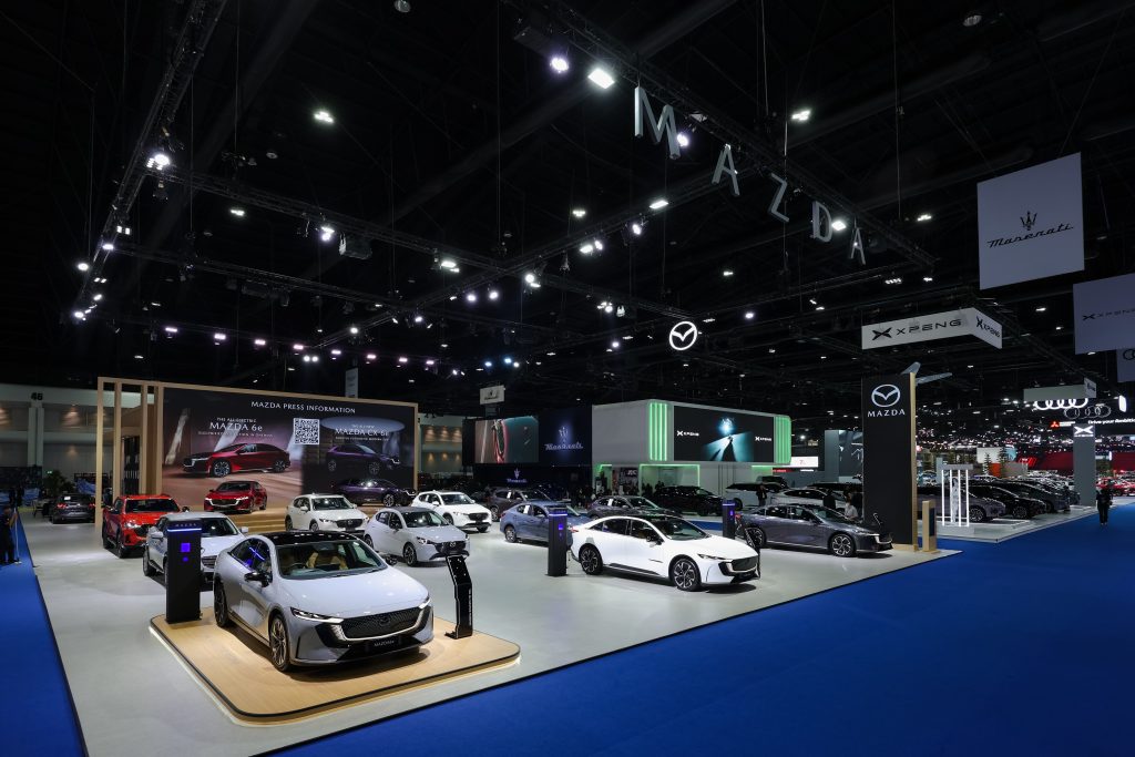 สำหรับในงาน มอเตอร์ โชว์ 2026 นอกจากมาสด้าจะได้นำยนตรกรรมเอสยูวีแห่งอนาคต The All-New Mazda CX-6e ที่พัฒนาภายใต้กลยุทธ์ Multi-solution มาให้ลูกค้าได้สัมผัสอย่างใกล้ชิดเป็นครั้งแรกในอาเซียน กับ ASEAN Premiere มาสด้ายังได้เปิดตัว The All-Electric Mazda6e ยนตรกรรมไฟฟ้ารุ่นแรกจากมาสด้าในประเทศไทย ที่มีให้เลือกทั้งหมด 2 รุ่น ได้แก่ รุ่น Premium ราคาจำหน่าย 1,169,000 ล้านบาท และรุ่น Exclusive ราคาจำหน่าย 1,199,000 ล้านบาท พร้อมมอบข้อเสนอ