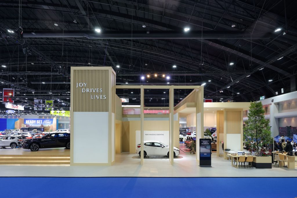 สำหรับการออกแบบบูธมาสด้าครั้งนี้ ได้ถ่ายทอดคอนเซ็ปต์ “Joy of Driving​ Creates a Richer Life” เพื่อถ่ายทอดปรัชญาแบรนด์ Joy Drives Lives เพราะมาสด้าเชื่อว่า “ความสุขในการขับขี่รถยนต์” (Joy of Driving) จะนำไปสู่ “ความสุขในการใช้ชีวิต” (Joy of Living) และมาสด้าตั้งใจส่งมอบความสุขเหล่านี้ไปยังลูกค้าทุกคน เพื่อให้ทุกวันขับเคลื่อนไปข้างหน้าด้วยรอยยิ้มและการใช้ชีวิตให้มีความหมาย มาสด้าได้เนรมิตพื้นที่ในบูธเป็น Experience Zone เพื่อให้ลูกค้าได้มาร่วมกิจกรรมความสุข นอกจากนี้ภายในบูธยังมีการจัดแสดงพื้นที่เพื่อบอกเล่าเรื่องราวของรถยนต์มาสด้า ที่มุ่งมั่นส่งมอบให้กับลูกค้ามาอย่างยาวนานจนถึงปัจจุบัน