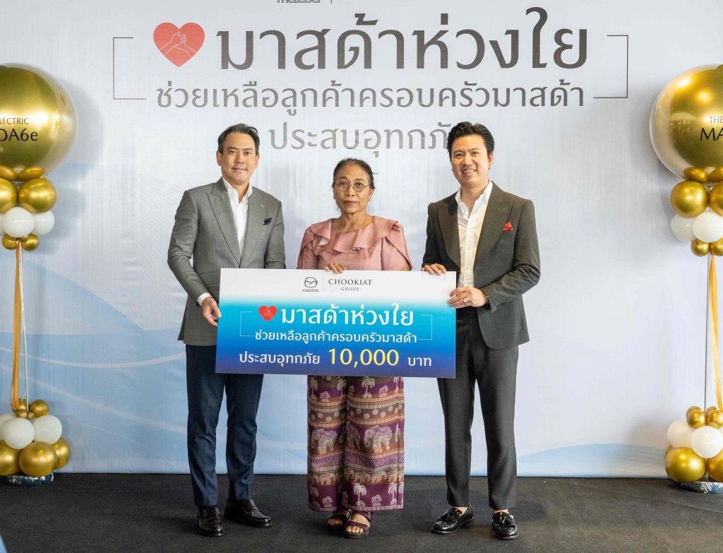 นายธีร์ เพิ่มพงศ์พันธ์ ประธานกรรมการบริหารและซีอีโอ และ มร. ทาเคชิ ซาโตะ รองประธานกรรมการบริหารและประธานเจ้าหน้าที่สายงานการเงิน บริษัท มาสด้า เซลส์ (ประเทศไทย) จำกัด พร้อมด้วย นายสิทธิพร ปิติเจริญกิจ กรรมการผู้จัดการ กลุ่มบริษัทชูเกียรติยนต์ จำกัด แสดงความห่วงใยมอบเงินช่วยเหลือลูกค้ามาสด้าที่ออกรถในเดือนธันวาคมที่ผ่านมาและประสบอุทกภัยในพื้นที่อำเภอหาดใหญ่ พร้อมออกมาตรการเร่งด่วนเพื่อให้การช่วยเหลือดูแลรถยนต์ของลูกค้า เพื่อบรรเทาทุกข์และสามารถนำรถยนต์กลับไปใช้ในการดำเนินชีวิตประจำวันได้โดยรวดเร็วที่สุด ตอกย้ำคำมั่นสัญญาในการมุ่งมั่นเอาใจใส่ดูแลลูกค้าเสมือนครอบครัวเดียวกัน แทนคำขอบคุณที่เลือกใช้รถยนต์มาสด้าเป็นพาหนะคู่ใจในทุกการเดินทางของทุกคนในครอบครัว