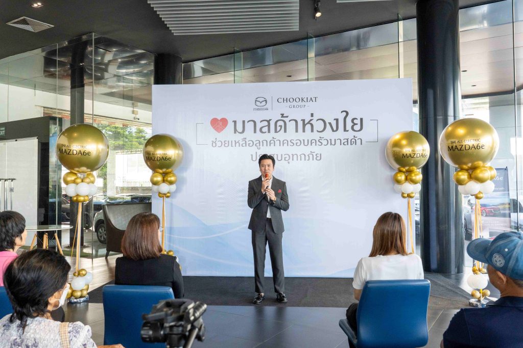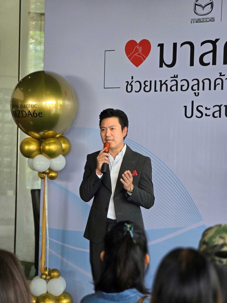 นายธีร์ เพิ่มพงศ์พันธ์ ประธานกรรมการบริหารและซีอีโอ บริษัท มาสด้า เซลส์ (ประเทศไทย) จำกัด กล่าวว่า “มาสด้าขอแสดงความห่วงใยอย่างสุดซึ้งต่อเหตุการณ์อุทกภัยที่เกิดขึ้นในพื้นที่ที่ได้รับผลกระทบจากน้ำท่วมในครั้งนี้ มาสด้าสำนักงานใหญ่และผู้จำหน่ายในพื้นที่ได้ติดตามสถานการณ์อย่างใกล้ชิด โดยประสานความร่วมมือกันอย่างเต็มที่เพื่อออกมาตรการช่วยเหลือฉุกเฉิน รวมถึงการเยียวยาลูกค้าที่ได้รับผลกระทบ เพื่อบรรเทาความเดือดร้อนอย่างเร่งด่วนและช่วยให้ลูกค้ากลับมาดำเนินชีวิตประจำวันได้โดยเร็วที่สุด ทั้งนี้ มาสด้าขอขอบคุณลูกค้าที่ไว้วางใจและเชื่อมั่นในรถยนต์มาสด้า โดยมาสด้ายินดีมอบความช่วยเหลืออย่างเต็มที่ พร้อมอยู่เคียงข้างและดูแลลูกค้าในทุกสถานการณ์ เราจะก้าวผ่านวิกฤตครั้งนี้ไปด้วยกัน”
