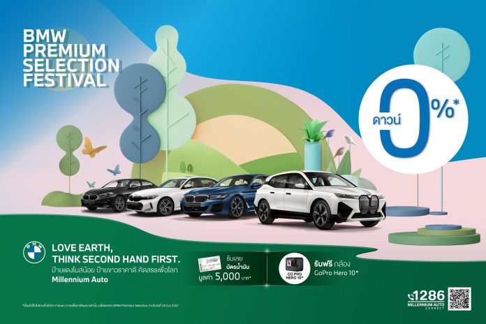 บริษัท มิลเลนเนียม ออโต๊ กรุ๊ป จำกัด ผู้จำหน่ายรถยนต์ บีเอ็มดับเบิลยู, มินิ และมอเตอร์ไซค์ บีเอ็มดับเบิลยู มอเตอร์ราด อย่างเป็นทางการ ภายใต้บริษัท มิลเลนเนียม กรุ๊ป คอร์ปอเรชั่น (เอเชีย) จำกัด (มหาชน) เรียกความคึกคักของตลาดยานยนต์ไทยช่วงกลางปี กับเดือนแห่งสีสันที่เปี่ยมด้วยความหลากหลาย จัดกิจกรรม ‘BMW PREMIUM SELECTION FESTIVAL’ ระหว่างวันที่ 10-16 มิถุนายน 2567 ยกทัพรถผู้บริหาร บีเอ็มดับเบิลยู ไมล์น้อย ราคาพิเศษ พร้อมรับฟรี! GoPro Hero10 และบัตรน้ำมัน 5,000 บาท เมื่อจองและออกรถภายในเวลา