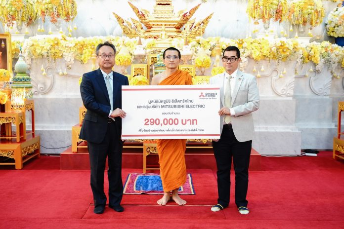 มูลนิธิมิตซูบิชิ อิเล็คทริคไทย นำโดย นายชินจิ เทะระทานิ รองประธานกรรมการ พร้อมด้วยผู้แทนจากมูลนิธิฯ มอบถวายเงินสนับสนุนจำนวน 290,000 บาท แด่ พระวชิรวรคุณ (เสริมพร ธมฺมวโร) ประธานกรรมการมูลนิธิประทีปเด็กไทย หลวงพ่อวิริยังค์ สิรินฺธโร เพื่อสมทบทุนการสร้างศูนย์พัฒนาเด็กเล็กให้ครอบคลุมพื้นที่ทั่วประเทศไทย ตามวัตถุประสงค์หลักของ “โครงการประทีปเด็กไทย” ต่อเนื่องเป็นปีที่ 9 ณ วัดศรีรัตนธรรมาราม จังหวัดสมุทรปราการ