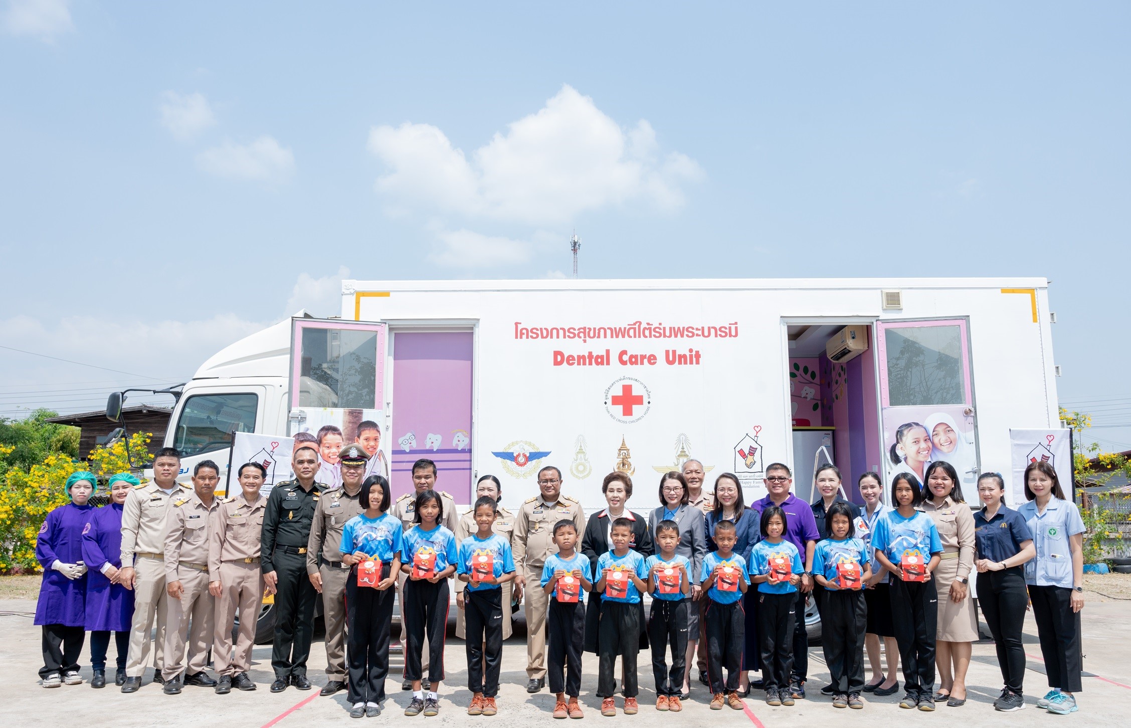 มูลนิธิแมคแฮปปี้แฟมิลี่ ร่วมกับมูลนิธิสงเคราะห์เด็กของสภากาชาดไทย พร้อมด้วยพันธมิตรจิตอาสาบูรณาการความร่วมมือ เดินหน้าสานต่อพันธกิจภายใต้ “โครงการสุขภาพดีใต้ร่มพระบารมี” ปีที่ 9 ที่มุ่งหวังให้เยาวชนได้เข้าถึงการดูแลและรักษาฟันให้ได้มากที่สุด ทั้งยังช่วยส่งเสริมและเฝ้าระวังสุขภาพช่องปากเด็กได้อย่างเต็มที่ โดยพันธกิจในครั้งนี้นำทัพด้วยหน่วยรถทันตกรรมเคลื่อนที่ (Mobile Care) ที่มีเหล่าทันตแพทย์และทันตบุคลากร ร่วมลงพื้นที่พร้อมให้บริการตรวจสุขภาพช่องปากให้แก่เด็กเยาวชนในพื้นที่จังหวัดอุบลราชธานี ฟรีไม่มีเสียค่าใช้จ่าย ณ โรงเรียนบ้านกลาง ต.กลาง อ.เดชอุดม จ.อุบลราชธานี เป็นระยะเวลา 4 วัน ตั้งแต่วันที่ 5 – 8 มีนาคม 2567 และมีกำหนดออกเดินทางไปยังจังหวัดอื่น ๆ ต่อไป ในปี 2567 เพื่อขยายความช่วยเหลือให้เด็กๆ ได้รับบริการตรวจและรักษาสุขภาพฟันได้อย่างครอบคลุมมากยิ่งขึ้น