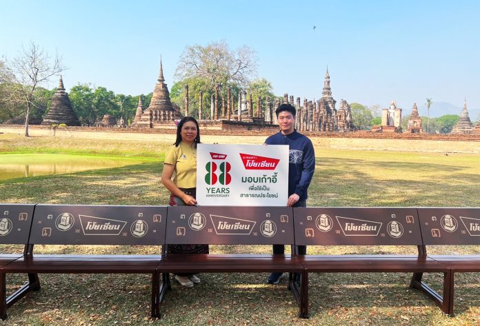 นอกจากนี้ ยาดมตราโป๊ยเซียนมีความมุ่งหวังจะช่วยส่งเสริมการท่องเที่ยวเชิงวัฒนธรรมของไทย โดยมอบเก้าอี้นั่งและร่มกันแดดเพื่อบริการนักท่องเที่ยวที่เดินทางมาท่องเที่ยวพักผ่อนในอุทยานประวัติศาสตร์และโบราณสถานสำคัญทั่วประเทศ โดยใช้แนวคิดว่า “ให้ทุกการพักผ่อน มีโป๊ยเซียนทุกลมหายใจ” โดยเมื่อปี พ.ศ.2566 ยาดมตราโป๊ยเซียนเริ่มมอบเก้าอี้นั่งและร่มกันแดดให้อุทยานประวัติศาสตร์พระนครศรีอยุธยา โดยให้บริการใน 4 วัดสำคัญที่ คือ วัดไชยวัฒนาราม วัดมหาธาตุ วัดราชบูรณะ และวัดพระศรีสรรเพชญ์ พร้อมกันนี้เมื่อเดือนมีนาคม พ.ศ.2567 ยาดมตราโป๊ยเซียนยังได้ให้บริการเก้าอี้นั่งและร่มกันแดดที่วัดพระราม รวมถึงเก้าอี้นั่งเพิ่มเติมที่วิหารพระมงคลบพิตรด้วย นอกจากนี้ยาดมตราโป๊ยเซียนยังมอบเก้าอี้นั่งให้บริการนักท่องเที่ยวในอุทยานประวัติศาสตร์สุโขทัย อุทยานประวัติศาสตร์ศรีเทพ อุทยานประวัติศาสตร์เมืองสิงห์ อุทยานประวัติศาสตร์พระนครคีรี อุทยานประวัติศาสตร์สด๊กก๊อกธม อุทยานประวัติศาสตร์พิมาย อุทยานประวัติศาสตร์พนมรุ้ง และปราสาทเมืองต่ำด้วยดร.ณัฐพงศ์ ลาภบุญทรัพย์ กรรมการบริหาร บริษัท โกลด์ มิ้นท์ โปรดักส์ จำกัด เผยว่า “โป๊ยเซียน เราตั้งใจที่จะสร้างสรรค์กิจกรรมต่างๆ เพื่อประโยชน์สาธารณะ เก้าอี้โรงพยาบาลก็จะเน้นสีสันสดใส สื่อถึงกำลังใจที่เราต้องการจะส่งต่อให้แก่ผู้มารับบริการของโรงพยาบาล สำหรับเก้าอี้ที่มอบให้อุทยานประวัติศาสตร์โบราณสถานต่างๆ เราตั้งใจนำ Gimmick ของสถานที่นั้น ๆ มาใส่เป็นลายในเก้าอี้ พร้อมคำอธิบายว่าลายบนเก้าอี้นี้มีประวัติความเป็นมาอย่างไร เช่น มีการค้นพบกรุเครื่องทองที่ วัดราชบูรณะ เป็นพระคชาธารหรือช้างทองคำทรงเครื่อง เราก็นำมาเป็นลายบนเก้าอี้มอบให้ที่วัดนี้โดยเฉพาะ และในวาระครบรอบ 88 ปี ยาดมตราโป๊ยเซียน นอกจากกิจกรรมมอบเก้าอี้นั่งและร่มให้กับโรงพยาบาล อุทยานประวัติศาสตร์และโบราณสถานต่างๆ แล้ว ยังมีกิจกรรม “Poysian Go Green Together @อยุธยา” สร้างถนนเส้นประวัติศาสตร์จากขยะพลาสติก ถือเป็นความร่วมใจของครอบครัวโป๊ยเซียนทั่วประเทศ รอติดตามรายละเอียดกิจกรรมเร็ว ๆ นี้ทาง Facebook : โป๊ยเซียน – Poysian ครับ”