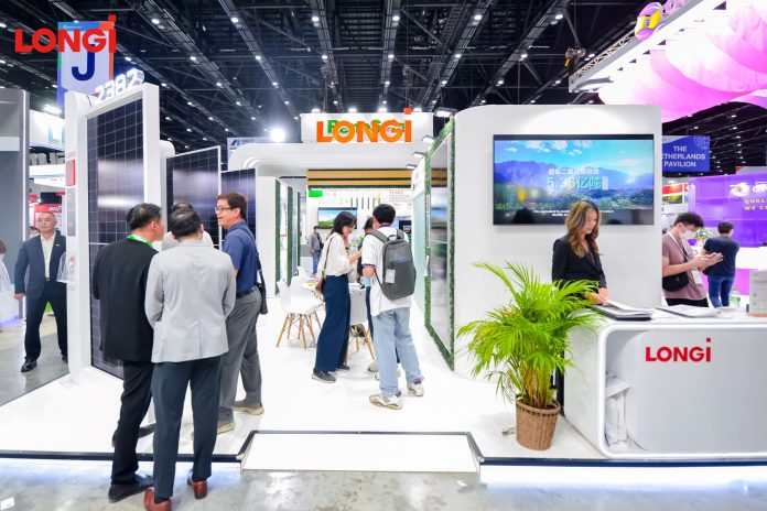 ASEAN Sustainable Energy Week 2023 งานแสดงสินค้าและการประชุมระดับนานาชาติ ที่ครอบคลุมด้านพลังงาน ทดแทนการจัดการพลังงานอย่างมีประสิทธิภาพ สิ่งแวดล้อม และเทคโนโลยียานยนต์ไฟฟ้า ซึ่งจัดขึ้น ณ ศูนย์ประชุมแห่งชาติสิริกิติ์ ที่ผ่านมา ได้ปิดฉากลงด้วยความสำเร็จ โดยในงานนี้ ลอนจิ (LONGi) ในฐานะผู้บุกเบิกเทคโนโลยีพลังงานแสงอาทิตย์ ระดับแนว หน้า ได้เปิดตัวสู่สาธารณชนอย่างยิ่งใหญ่ ในกรุงเทพมหานคร พร้อมนำเสนอผลิตภัณฑ์นวัตกรรมใหม่ล่าสุด อันได้แก่ โมดูลรุ่น Hi-MO 7 ที่มาพร้อมเทคโนโลยีเซลล์ HPBC (Hybrid Passivated Back Contact) และโมดูลรุ่น Hi-MO 6 ที่สามารถปรับเปลี่ยนได้ ตามความต้องการของลูกค้า จากการกระจายการทำงานไปยังส่วนต่างๆ อีกทั้งยังครอบคลุมโซลูชั่นทางด้านผลิตภัณฑ์ เพื่อรองรับ การใช้งานในสถานการณ์ที่หลากหลาย