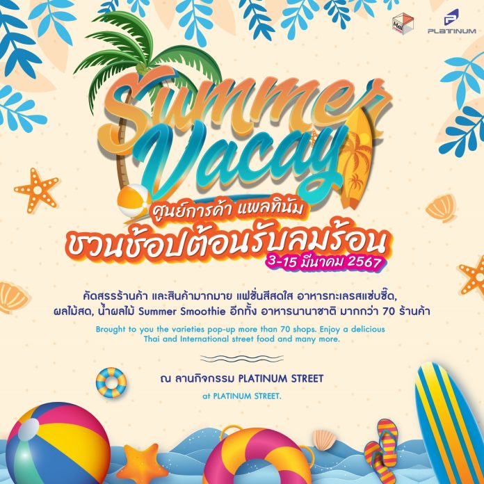 ศูนย์การค้าแพลทินัม ชวนช้อปต้อนรับลมร้อนในงาน “ Summer Vacay ” ตั้งแต่วันนี้ –  15 มี.ค. 67