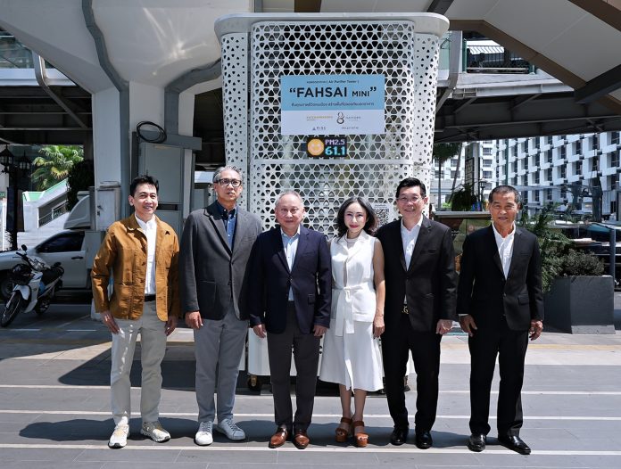 หอฟอกอากาศ ‘ฟ้าใส มินิ’ (FAHSAI mini) นับเป็นโมเดลใหม่ล่าสุดที่มีขนาดเหมาะสมและสะดวกในการติดตั้งในย่านราชประสงค์ มีประสิทธิภาพลดฝุ่นพิษลงได้ถึง 60,000 ลูกบาศก์เมตรต่อชั่วโมง ครอบคลุมพื้นที่รัศมีรอบตัวหอฟอกอากาศประมาณ 50 X 50 เมตร ความสูงประมาณ 5 เมตร (พื้นที่ประมาณ 12,500 ลูกบาศก์เมตร) เทียบเท่าขนาดหนึ่งสนามฟุตบอลขนาดใหญ่ และได้มีการตรวจวัดประสิทธิภาพการฟอกอากาศอย่างต่อเนื่อง และในเดือนมกราคมที่ผ่านมา ยังพบด้วยว่า ‘ฟ้าใส มินิ’ (FAHSAI mini) สามารถลดค่าฝุ่นได้ถึง 60% “เราหวังว่าฟ้าใส มินิ (FAHSAI mini) จะเป็นต้นแบบของโครงการที่ช่วยให้เมืองไทยสามารถรับมือกับปัญหาฝุ่น PM2.5 ได้อย่างเป็นรูปธรรม และหวังว่าจะมีการขยายโครงการไปยังพื้นที่อื่น ๆ ในอนาคต เพื่อให้ประชาชนสามารถสูดอากาศบริสุทธิ์และมีคุณภาพชีวิตที่ดีขึ้น” รศ.ดร.สิงห์ อินทรชูโตกล่าวสรุป