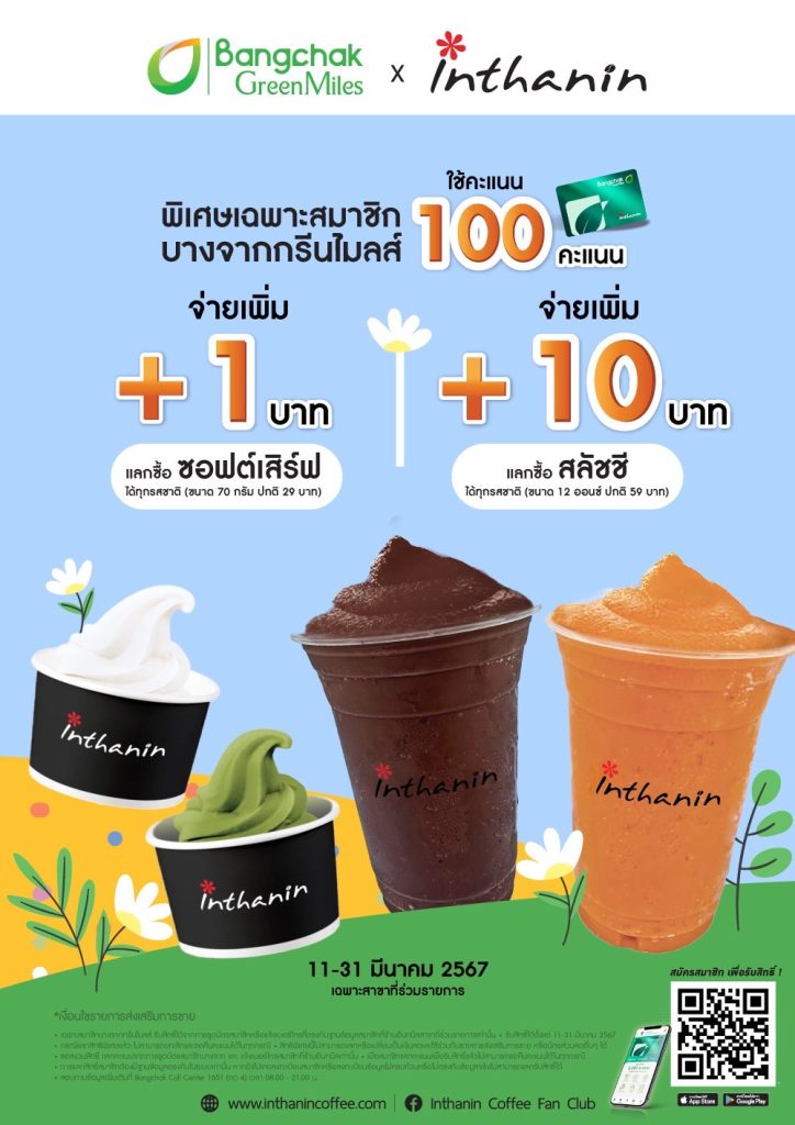 ซัมเมอร์นี้อินทนิลจึงมอบโปรโมชันพิเศษให้กับลูกค้าสมาชิกได้สดชื่นเย็นฉ่ำกับ 2 เมนูนี้ ด้วยการใช้คะแนนเพียง 100 คะแนน รับสิทธิ์แลกซื้อเครื่องดื่มสลัชชี่ ขนาด 12 ออนซ์ ทุกรสชาติ ในราคาเพียง 10 บาท (ปกติ 59 บาท) หรือแลกซื้อไอศกรีมซอฟต์เสิร์ฟ ทุกรสชาติ ในราคาเพียง 1 บาท (ปกติ 29 บาท) จำกัด 1 สิทธิ์ ต่อ 1 ใบเสร็จ จำกัดแลกคะแนนสูงสุด 4,000 คะแนนต่อวัน ตั้งแต่วันนี้ – 31 มีนาคม 2567 ณ ร้านอินทนิลสาขาที่ร่วมรายการ สำหรับลูกค้าที่ยังไม่เป็นสมาชิกก็สามารถสมัครได้ง่ายและสมัครฟรีที่ร้านอินทนิลทุกสาขาทั่วประเทศ และรับ 100 คะแนนเข้าระบบทันทีเมื่อสะสมครั้งแรก เพื่อรับสิทธิโปรโมชันนี้ได้ หรือสิทธิประโยชน์อื่นๆ ที่แบรนด์อินทนิลจัดโปรโมชันดีๆ หมุนเวียนให้กับในทุกๆ เดือน นอกจากนี้ยังสมัครผ่านช่องทางออนไลน์แบบดิจิทัลการ์ดได้ที่ https://www.bcpgreenmiles.com/th