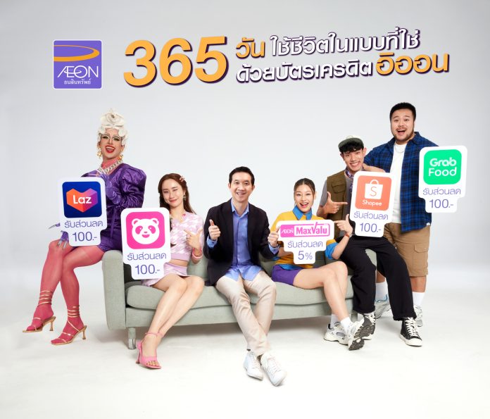 นายวิรัช สิทธิวราภรณ์ (กลาง) รองกรรมการผู้จัดการอาวุโส ฝ่ายการตลาด บริษัท อิออน ธนสินทรัพย์ (ไทยแลนด์) จำกัด (มหาชน) เปิดตัวแคมเปญ “365 วัน ใช้ชีวิตในแบบที่ใช่ ด้วยบัตรเครดิตอิออน” เติมความสุขแบบจัดเต็ม เพียงใช้จ่ายผ่านบัตรเครดิตอิออน ทางเลือกดี ๆ สำหรับทุกการใช้จ่าย ที่สะดวกสบาย กับสิทธิประโยชน์และโปรโมชันดี ๆ ที่อิออนคัดสรรมาเพื่อตอบโจทย์ไลฟ์สไตล์และความต้องการที่หลากหลาย ไม่ว่าจะชอปที่ร้านค้าออนไลน์ชั้นนำอย่าง ลาซาด้า, ช้อปปี้, ฟู้ดแพนด้า, แกร็บฟู้ด ทั้งยังมีแม็กซ์แวลู ซูเปอร์มาร์เก็ต และแม็กซ์แวลู ทันใจ ด้วยโค้ดส่วนลดพิเศษให้ได้ฟินยิ่งขึ้นกับทุกการใช้จ่าย ไม่ว่าจะกิน ชอป ก็ฟินได้สุด ๆ ด้วยบัตรเครดิตอิออน