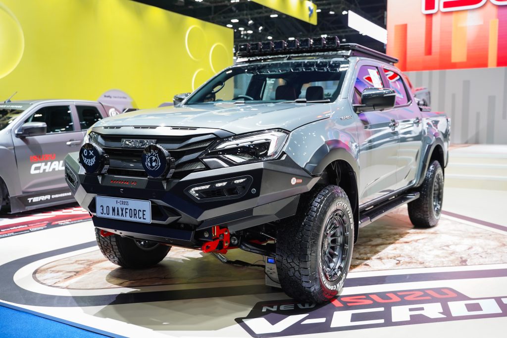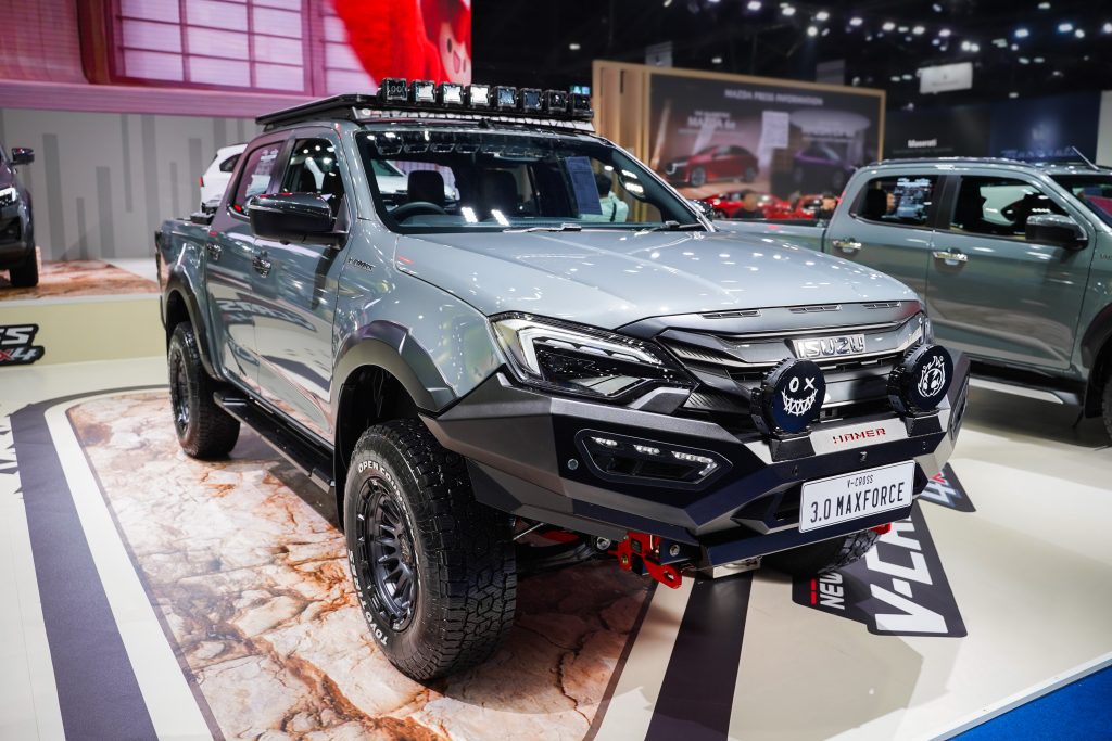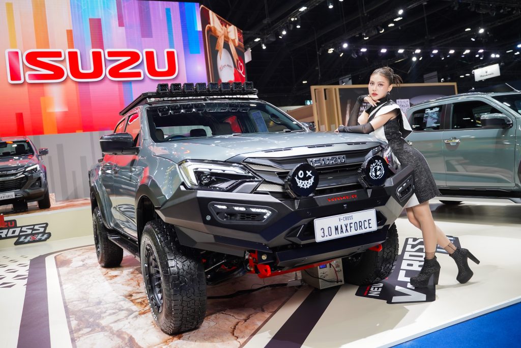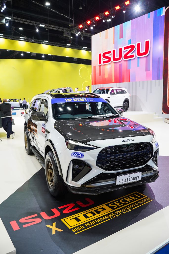 โดยอีซูซุได้นำรถมาจัดแสดงรวมทั้งสิ้น 15 คัน ทั้งรุ่นมาตรฐานยอดนิยมครบทุกไลน์อัพ จำนวน 10 คัน นำโดยรถปิกอัพอีซูซุ ดีแมคซ์ และรถยนต์นั่งอเนกประสงค์มิว-เอ็กซ์ รวมถึงอีกหนึ่งทางเลือกให้กับลูกค้าชาวไทยอย่างรถปิกอัพไฟฟ้า “อีซูซุ ดีแมคซ์ EV” ที่ได้นำมาจำหน่ายครั้งแรกภายในงาน และเพิ่มความสปอร์ตเร้าใจกับรถตกแต่งพิเศษหลากสไตล์จำนวน 5 คัน ที่ออกแบบมาเพื่อสร้างแรงบันดาลใจและสะกดทุกสายตา นำทัพโดย New! ISUZU V-CROSS 4×4 “THE ONE & ONLY” และ MU-X “THE NEXT PEAK” 4WD ครั้งแรกกับเครื่องยนต์ 2.2 Ddi MAXFORCE ในระบบขับเคลื่อนสี่ล้อ ที่เปิดตัวเมื่อปลายเดือนกุมภาพันธ์มาโชว์ภายในงาน พร้อมด้วยไฮไลต์สำคัญอย่าง รถปิกอัพอีซูซุ ดีแมคซ์ รถแข่งต้นแบบที่จะใช้ในรายการ “ISUZU CHALLENGE THAILAND 2026” และ ISUZU V-CROSS 4×4 เครื่องยนต์ 2.2 Ddi MAXFORCE ที่อีซูซุได้ร่วมมือกับ WILD ผู้ผลิตชิ้นส่วนชื่อดังของไทยในการออกแบบอุปกรณ์ตกแต่งพิเศษรอบคันโดยเฉพาะ และรถยนต์นั่งอเนกประสงค์ MU-X “THE NEXT PEAK” 2.2 Ddi MAXFORCE รุ่น RS สี Dolomite White Pearl มาตกแต่งเพิ่มความดุดันขั้นสุดในสไตล์ Top Secret SPL ครั้งแรกของโลกกับการเผยโฉมโปรเจกต์ “TOP Secret The First PPV” และ รถยนต์นั่งอเนกประสงค์ MU-X “THE NEXT PEAK” 2.2 Ddi MAXFORCE รุ่น Active สี Dolomite White Pearl ที่ร่วมมือกับ Bangkok Hot Rod Custom Show ผู้จัดงานประกวด Custom Car ที่ใหญ่ที่สุดในประเทศไทย มาพลิกโฉมสะกดทุกสายตาด้วยชุดแต่งพิเศษคอนเซปต์ “Premium Tough”