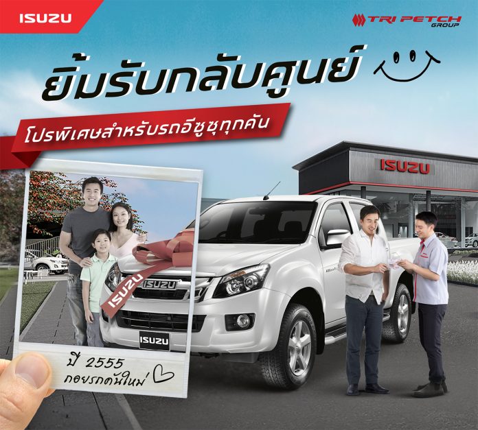 กลุ่มตรีเพชรโดย คุณวิชัย สินอนันต์พัฒน์ กรรมการ บริษัท ตรีเพชรอีซูซุเซลส์ จำกัด เชิญชวนผู้ใช้รถปิกอัพ รถยนต์นั่งอเนกประสงค์อีซูซุทุกรุ่น และรถบรรทุกอีซูซุขนาด 2 ตันขึ้นไป เข้ารับบริการที่ศูนย์บริการมาตรฐานอีซูซุกับแคมเพจ์นสุดพิเศษ “ยิ้มรับกลับศูนย์” ตั้งแต่วันที่ 1 กันยายน 2566 – 30 ธันวาคม 2566