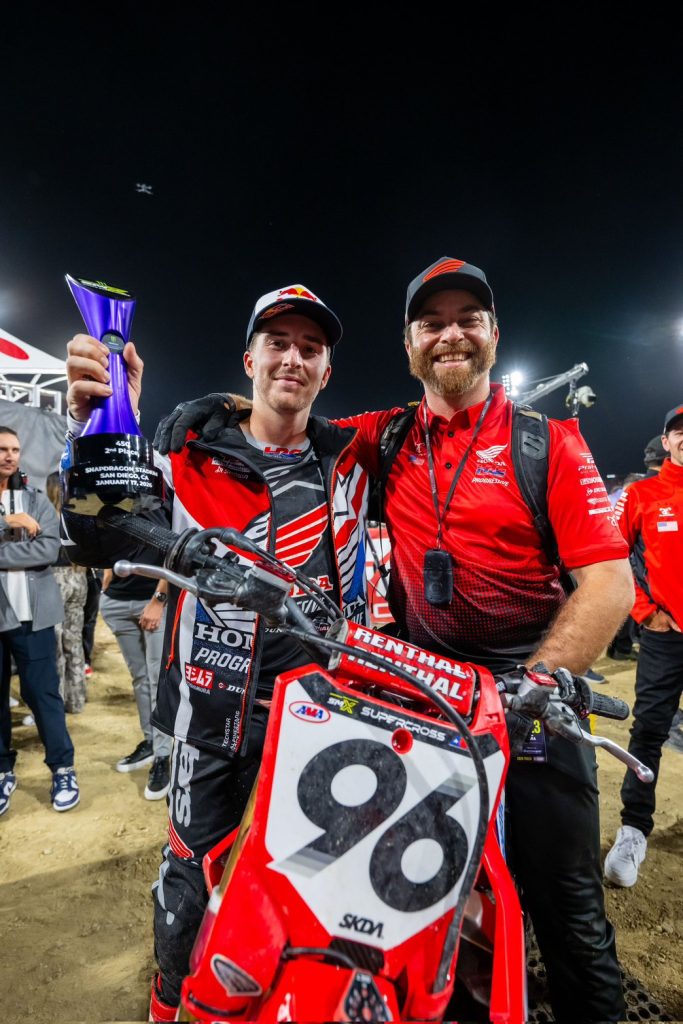 ศึก AMA Supercross 2026 (AMA SX 2026) สนามที่ 2 ไปดวลความเร็วกันที่ซานดิเอโก ประเทศสหรัฐอเมริกา เมื่อวันที่ 17 มกราคม 2569 ที่ผ่านมา “ฮันเตอร์ ลอว์เรนซ์” สังกัดทีม Honda HRC Progressive หมายเลข 96 พัฒนาผลงานจากสนามแรก ทะยานรถแข่ง Honda CRF450R ขึ้นมาเป็นผู้นำได้ทันทีตั้งแต่ต้นเกมส์ โดยคุมสถานการณ์เอาไว้ได้จนถึงช่วงกลางการแข่งขันก่อนโดนคู่แข่งขยับเข้าประกบ โดยการแข่งขันที่ดวลกันอย่างเข้มข้นนั้น ฮันเตอร์เสียจังหวะก่อนส่งผลให้ขยับลงมาอยู่ในอันดับที่ 3