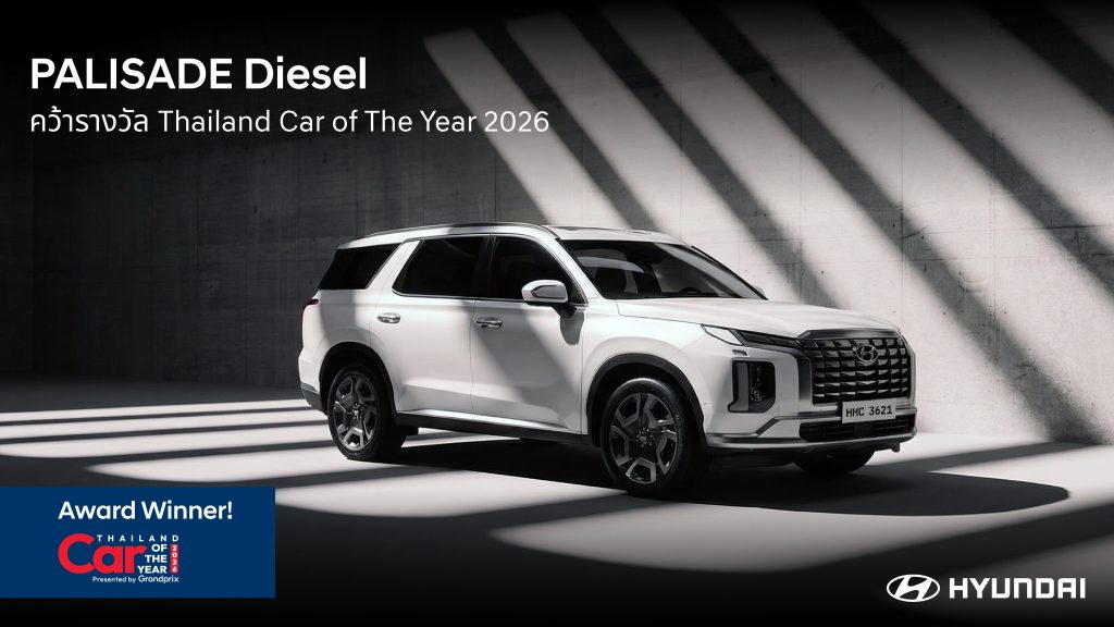 บริษัท ฮุนได โมบิลิตี้ (ประเทศไทย) จำกัด ประกาศความสำเร็จรับต้นปี 2569 หลังคว้า 2 รางวัลอันทรงเกียรติจากเวทีประกาศรางวัลรถยอดเยี่ยมแห่งปี “CAR & BIKE OF THE YEAR 2026” จัดโดย บริษัท กรังด์ปรีซ์ อินเตอร์เนชั่นแนล จำกัด (มหาชน) สะท้อนความแข็งแกร่งของไลน์อัป SUV โดย Hyundai all-new SANTA FE Hybrid คว้ารางวัล BEST HYBRID MID-SIZE SUV UNDER 1,800 c.c. ขณะที่ Hyundai PALISADE Dieselคว้ารางวัล BEST DIESEL SUV UNDER 2,200 c.c. ตอกย้ำความแข็งแกร่งของแบรนด์ที่พร้อมมอบผลิตภัณฑ์ที่มีคุณภาพยอดเยี่ยมแก่ผู้บริโภคชาวไทย