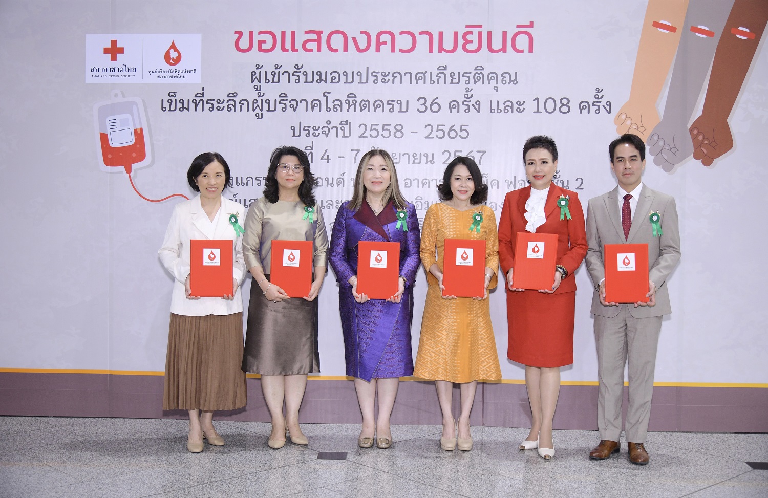 เข้ารับประกาศนียบัตรเกียรติคุณ เป็นองค์กรที่สามารถจัดหาปริมาณโลหิตให้เพียงพอต่อความต้องการของผู้ป่วยในอนาคตมากที่สุด