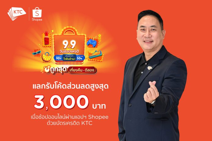 ของพันธมิตร และเนื่องในโอกาสเฉลิมฉลองการกลับมาอีกครั้งของเทศกาลช้อปปิ้งที่ยิ่งใหญ่ที่สุดของช้อปปี้ Shopee 9.9 วันช้อปแห่งปี เรามีความยินดีอย่างยิ่งที่ได้ร่วมมือกับพันธมิตรชั้นนำอย่าง KTC ในการร่วมส่งมอบความคุ้มค่าไปกับการแลกคะแนนจาก KTC พร้อมเพิ่มความคึกคักให้กับเทศกาลช้อปปิ้งในปีนี้ด้วยเรทการแลกพอยท์ที่ดีที่สุด”