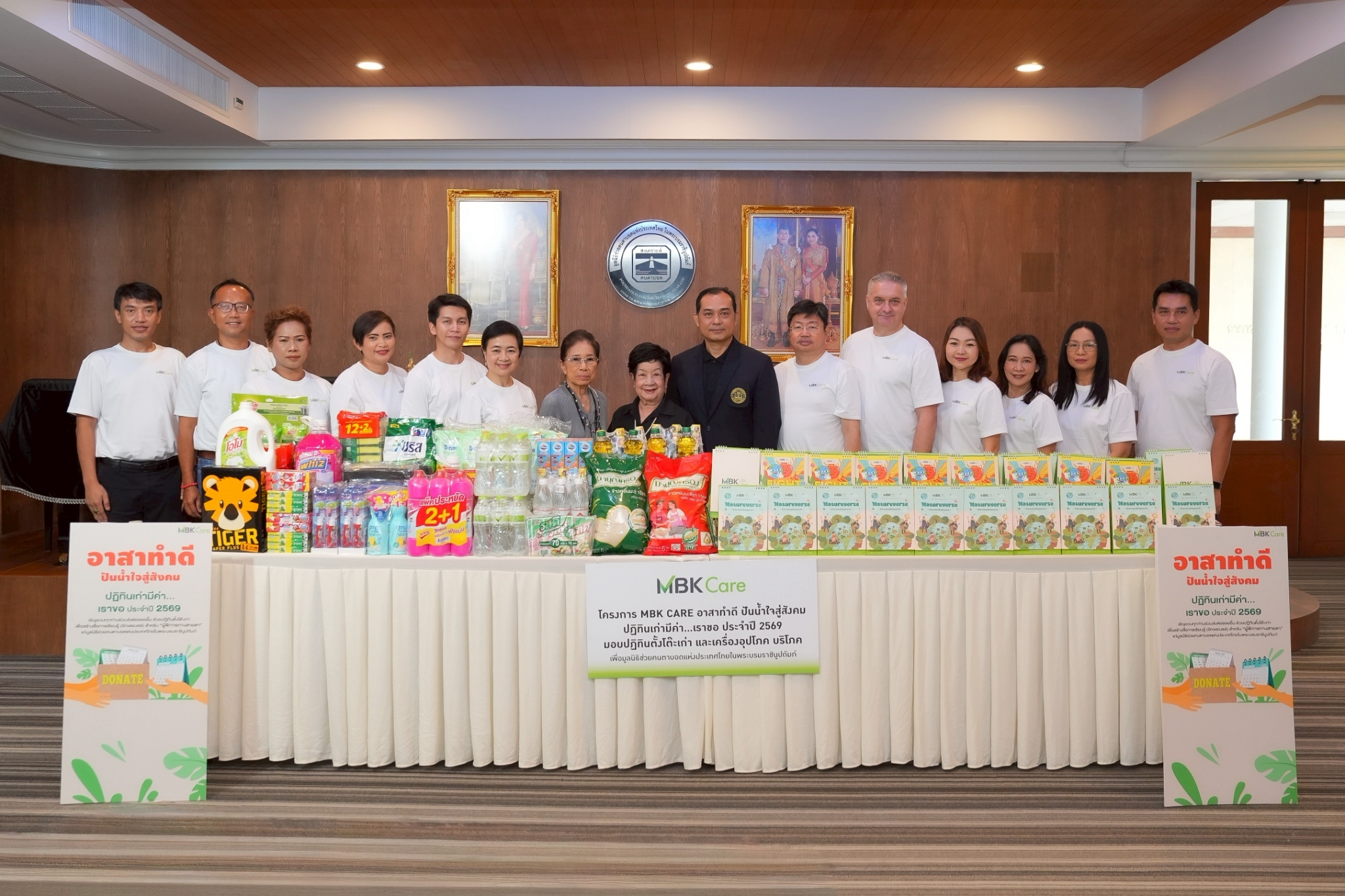 (ที่ 10 จากซ้าย)  พร้อมด้วย นางสาวศตกมล วรกุล ผู้อำนวยการอาวุโสฝ่ายสื่อสารองค์กร บริษัท อินเทลลิเจ้นท์ ครีเอทีฟ แอนด์ มาร์เก็ตติ้ง จำกัด (ที่ 6 จากซ้าย) ร่วมขับเคลื่อนพลังแห่งการแบ่งปันในกิจกรรม “MBK Care อาสาทำดี ปันน้ำใจสู่สังคม ปฏิทินเก่ามีค่า เราขอ ประจำปี 2569” โดยส่งมอบปฏิทินตั้งโต๊ะเก่าที่รวบรวมจากพนักงานบริษัทในเครือ เอ็ม บี เค จำกัด รวมถึงผู้ประกอบการร้านค้าภายในศูนย์การค้าเครือเอ็ม บี เค จำนวนรวมกว่า 13,447 เล่ม พร้อมด้วย ข้าวมาบุญครอง ผลิตภัณฑ์ของกิน ของใช้จำเป็นสำหรับเด็กและผลิตภัณฑ์ทำความสะอาด ให้แก่ มูลนิธิช่วยคนตาบอดแห่งประเทศไทย ในพระบรมราชินูปถัมภ์ โดยมี นางณัฎฐา มะระกานนท์ รองประธานกรรมการมูลนิธิฯ (ที่ 7 จากซ้าย) เป็นผู้รับมอบ ณ มูลนิธิช่วยคนตาบอดฯ เมื่อเร็ว ๆ นี้
