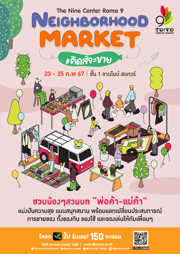 เดอะไนน์ เซ็นเตอร์ พระราม 9 ศูนย์การค้าในเครือเอ็ม บี เค ชวนเพื่อนๆ มาแชร์และช้อปสินค้าคุณภาพ ในพื้นที่นัดพบ “Neighborhood Market #คิดส์จะขาย” พบกับบูทจำหน่ายสินค้าจากน้อง ๆ ที่สวมบทเป็นพ่อค้า แม่ค้า มาแบ่งปันความสุข แบบสนุกสนาน พร้อมแลกเปลี่ยนประสบการณ์การขายของ ทั้งของกิน ของใช้ และของเล่นให้กับเพื่อน ๆ รวมถึงบูธของสถาบันการศึกษาภายในศูนย์การค้าฯ