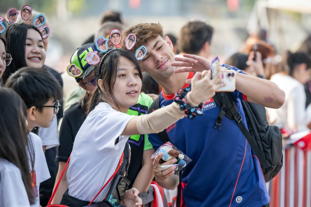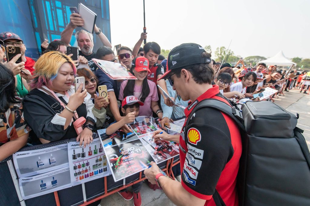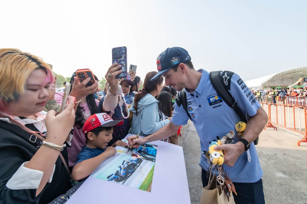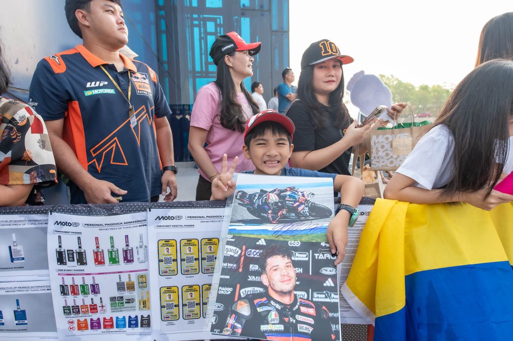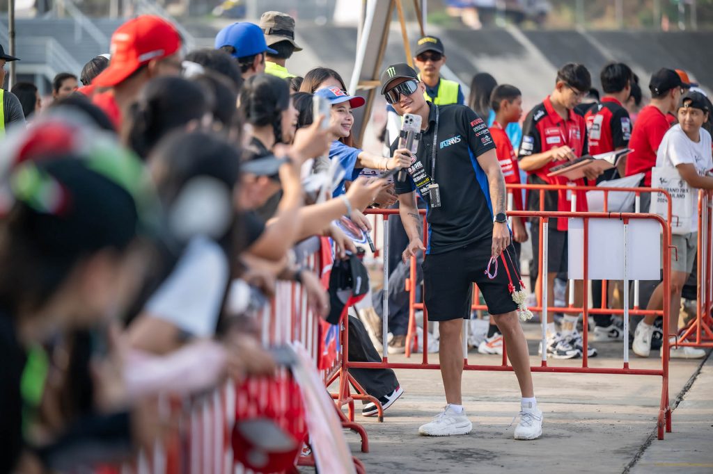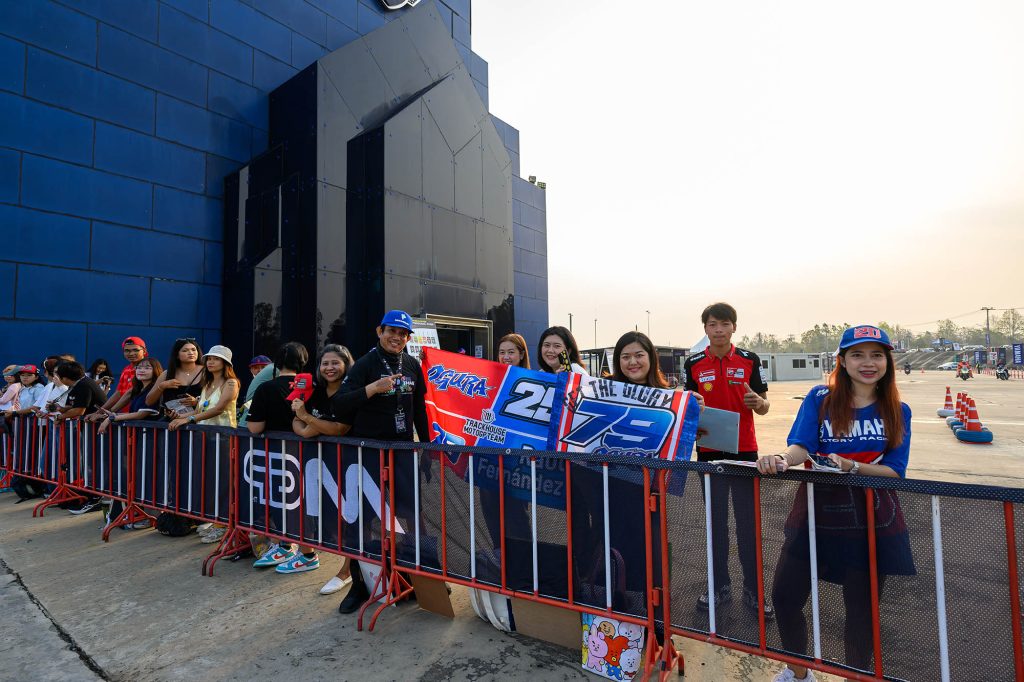 จุดไฮไลต์สำคัญอยู่ที่บริเวณทางเข้ารั้วเซอร์กิต เส้นทางหลักของเหล่านักบิดระดับโลก บรรดาแฟนคลับต่างมารอคอยนักแข่งคนโปรดกันตั้งแต่เช้าตรู่ เหล่านักบิดที่มาพร้อมกับความมุ่งมั่นรับฤดูกาลใหม่ ต่างจัดเต็มให้แฟนๆ ได้ฟินกันถ้วนหน้า ทั้งการถ่ายภาพ แจกลายเซ็น และรับของที่ระลึกอย่างเป็นกันเอง เรียกว่าใครมาก่อนได้เปรียบ เพราะได้ใกล้ชิดแบบเอ็กซ์คลูซีฟก่อนเข้าสู่โหมดการแข่งขันที่เข้มข้น