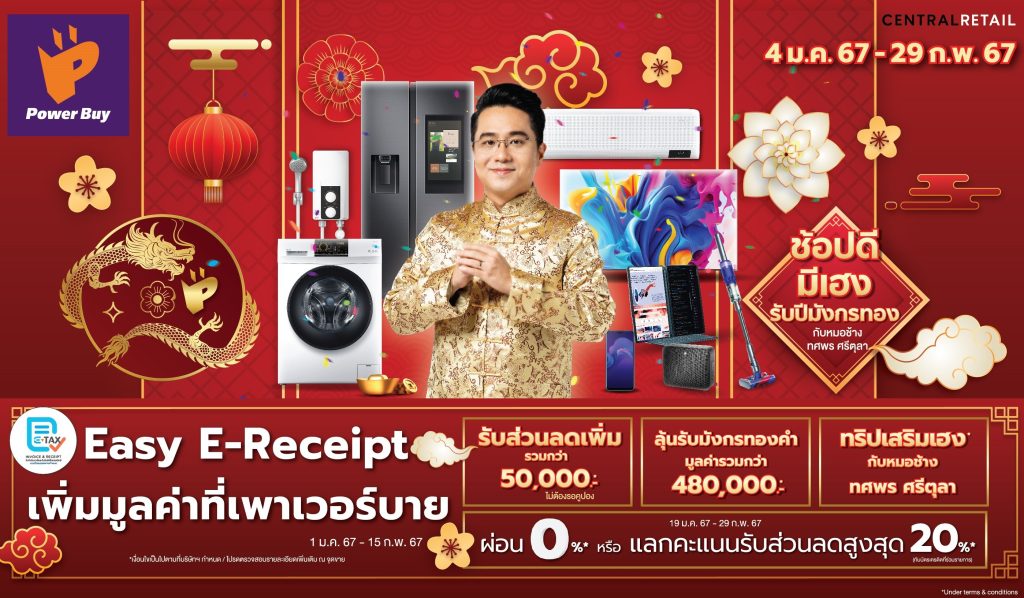 เพาเวอร์บาย ในเครือเซ็นทรัล รีเทล ชวนช้อปลดหย่อนภาษี “Easy E-Receipt” พร้อมจัดแคมเปญสุดปังรับปีมังกรทอง “ช้อปดีมีเฮง” กระตุ้นการจับจ่ายต้นปี 67