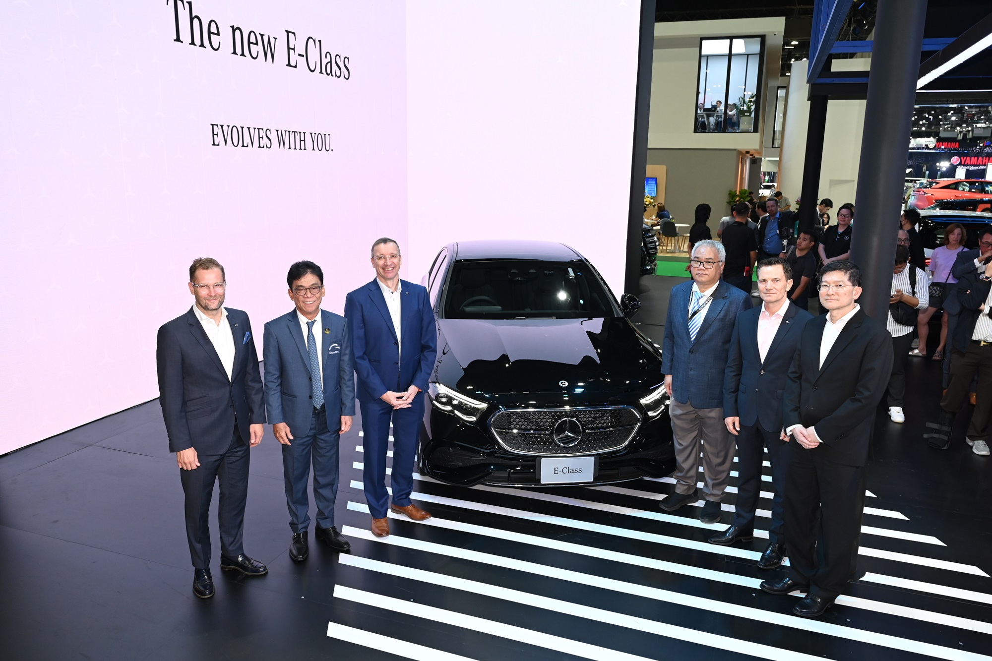 เมอร์เซเดส-เบนซ์ (ประเทศไทย) สะท้อนการเป็น “ICON OF INSPIRATION.” ยกทัพยนตรกรรมกว่า 20 รุ่น จัดแสดงในงานบางกอก อินเตอร์เนชั่นแนล มอเตอร์โชว์ ครั้งที่ 45 (Motor Show 2024) เปิดตัวยนตรกรรมล่าสุด 5 รุ่น นำโดย “The new E-Class: Launch Edition” Business Saloon ที่มาเซอร์ไพรส์กลางงานพร้อมเปิดจองเป็นครั้งแรก มาด้วยกัน 2 รุ่นย่อย ได้แก่ E 220 d AMG Line ราคาจำหน่าย 3,990,000 บาท และ E 350 e AMG Dynamic ราคาจำหน่าย 4,250,000 บาท ต่อด้วยรถตระกูลเอสยูวีเกือบทุกเซกเมนต์ตั้งแต่ GLC 350 e 4MATIC Coupe AMG Dynamic ราคาจำหน่าย 4,340,000 บาท, GLE 300 d 4MATIC AMG Line ราคาจำหน่าย 4,980,000 บาท และ GLS 450 d 4MATIC AMG Dynamic ราคาจำหน่าย 6,980,000 บาท รวมถึง “EQS 450+ AMG Dynamic” รถยนต์พลังงานไฟฟ้า 100% รุ่นนำเข้าแบบ CBU ในราคาที่ดีที่สุด 5,950,000 บาท นอกจากนี้ยังเผยโฉมรถยนต์ระดับ Iconic ของแบรนด์อย่าง “G 63 Grand Edition” 1 ใน 1,000 คันทั่วโลก ที่นำมาจำหน่ายเพียง 10 คันในไทย ในราคา 23,400,000 บาท และจัดแสดงรถยนต์ต้นแบบ “Vision One-Eleven” อนาคตแห่งยานยนต์ที่มีดีเอ็นเอมาจาก C 111 ตำนานแห่งยุค
