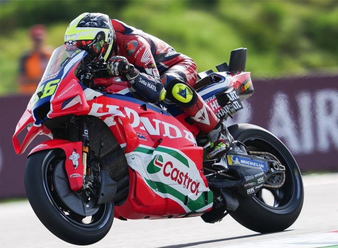 ผลการซ้อมปรากฏว่า “โจอัน เมียร์” หมายเลข36 อดีตแชมป์โลก โมโตจีพี 2020 จาก ฮอนด้า เอชอาร์ซี กลับมาอยู่ในฟอร์มที่ดีอีกครั้ง จบวันแรกด้วยการรั้งอันดับ 9 ตามหลังผู้นำเพียง 0.394 วินาที สามารถผ่านเข้าสู่การควอลิฟายรอบ Q2 ได้แบบอัตโนมัติ ส่วน “ลูก้า มารินี” ทีมเมทชาวอิตาเลียนหมายเลข 10 รั้งอันดับ 16 ตามหลัง 0.656 วินาที