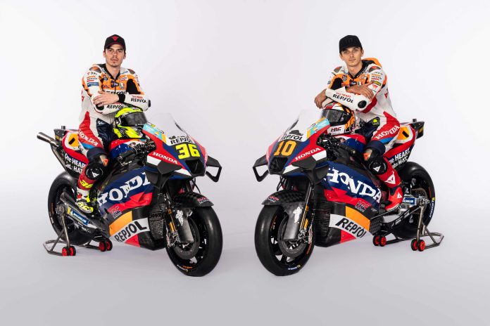 “เรปโซล ฮอนด้า” ที่มีความเปลี่ยนแปลงอย่างมากในปี 2024 โดยเฉพาะลวดลายรถแข่ง Honda RC213V ที่มีการออกแบบใหม่ทั้งคัน ให้ดุดันมากขึ้นกว่าทุกปี และได้เซ็นสัญญานักบิดอิตาเลียน “ลูก้า มารินี” เข้าสู่ทีม ร่วมงานกับ “โจอัน เมียร์” นักบิดสแปนิช โดยมีเป้าหมายสำคัญในการพาทีมกลับสู่กลุ่มหน้าใน โมโตจีพี