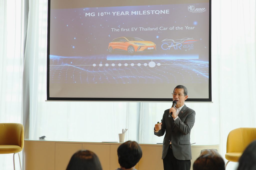 มร. ซู๋ว์ หยิ่น กล่าวเพิ่มเติมว่า “เนื่องในโอกาสครบรอบ 100 ปี และทศวรรษที่สอง เอ็มจี เตรียมแผนที่จะยกระดับแบรนด์ด้วยรถยนต์ที่โดดเด่นด้วยเทคโนโลยีในหลากหลายรูปแบบการขับเคลื่อน อีกทั้งยังเตรียมแผนผลักดันให้ประเทศไทยเป็นศูนย์กลางเพื่อการส่งออกไปยังประเทศเวียดนาม อินโดนีเซีย และประเทศอื่นๆ ในภูมิภาคเอเชียตะวันออกเฉียงใต้ และภูมิภาคอื่น ๆ ซึ่งสอดคล้องกับหมุดหมายใหม่ของ เอ็มจี