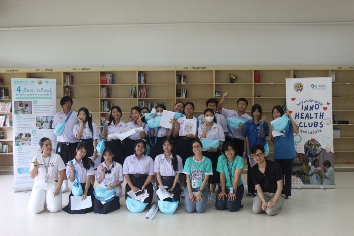 โครงการ ‘ชมรมนวัตกรรมสุขภาพวัยใส’ ถือกำเนิดขึ้นจากความตระหนักถึงความท้าทายด้านสุขภาพที่เยาวชนหญิงในพื้นที่ด้อยโอกาสต้องเผชิญ ไม่ว่าจะเป็นปัญหาสุขภาพจิตจากความเครียด ปัญหายาเสพติดในชุมชน และการขาดการเข้าถึงความรู้ด้านสุขภาวะที่ถูกต้อง โดยมูลนิธิคีนันแห่งเอเซีย ดำเนินโครงการภายใต้การสนับสนุนเชิงกลยุทธ์จาก เอ็มเอสดี ประเทศไทย และทำงานร่วมกับ 6 โรงเรียนในพื้นที่เป้าหมาย อาทิ เขตคลองเตย และเขตราชเทวี พร้อมสร้างความเข้มแข็งให้กับผู้เปลี่ยนแปลงในพื้นที่ กว่า 40 คน ซึ่งประกอบด้วยคุณครู อาสาสมัครสาธารณสุขกรุงเทพมหานคร (อสส.) และบุคลากรทางการแพทย์ ผ่านการพัฒนาหลักสูตรที่ครอบคลุม 6 โมดูลสำคัญ ได้แก่ สุขภาพกาย สุขภาพใจ การกินและการออกกำลังกาย สารเสพติด อนามัยเจริญพันธุ์และเพศศึกษา และสิทธิเด็ก เพื่อเสริมสร้างศักยภาพเยาวชนหญิงให้เป็น ‘อาสาสมัครสุขภาพวัยใส’ ผ่านกระบวนการเรียนรู้แบบลงมือทำ (Activity-based learning) เช่น การวาดแผนที่ชุมชนเพื่อทำความเข้าใจปัญหาสุขภาพในพื้นที่ และการประยุกต์ใช้ Design Thinking ในการออกแบบกิจกรรม สิ่งสำคัญคือโครงการสร้างพื้นที่ให้เยาวชนและผู้ใหญ่ในชุมชนได้ทำงานร่วมกัน เพื่อให้อาสาสมัครสุขภาพวัยใสสามารถริเริ่ม ออกแบบ และดำเนินการสร้างสรรค์นวัตกรรมด้านสุขภาพที่ตอบโจทย์ปัญหาจริงในชุมชนของตนเอง