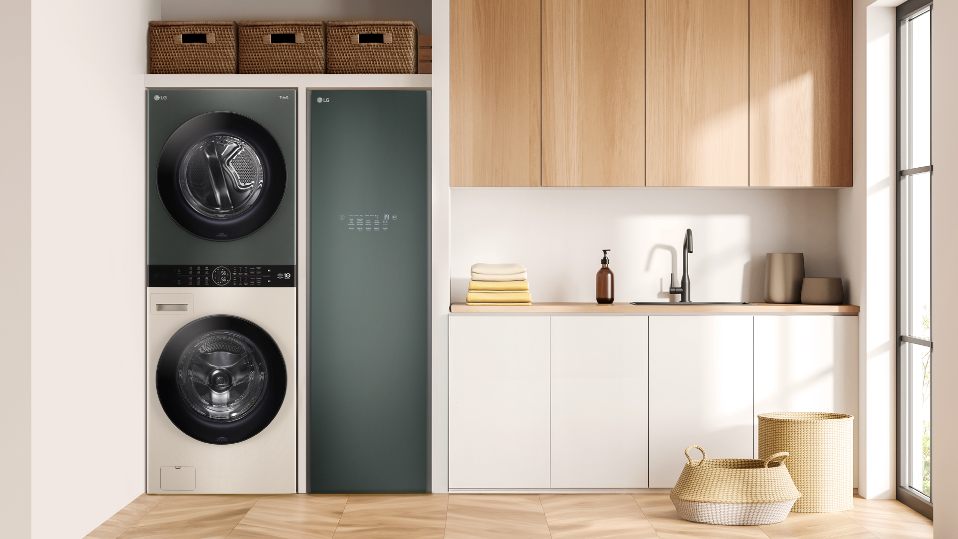 ขอประเดิมด้วยนวัตกรรมเครื่องซักผ้าที่เพอร์เฟกต์สำหรับฤดูฝนอย่าง LG WashTowerTM รุ่น WT2116SHEG เครื่องซักผ้าที่มาพร้อมเครื่องอบผ้าในเครื่องเดียว ทำให้สามารถใช้งานได้อย่างสะดวกสบาย แถมดีไซน์แบบทาวเวอร์ทรงสูง ยังทำให้ LG WashTowerTM เครื่องนี้ไม่กินพื้นที่ภายในบ้านมากอีกด้วย นอกเหนือจากเรื่องดีไซน์ LG WashTowerTM ยังโดดเด่นด้วยนวัตกรรมด้านการทำความสะอาดและถนอมเสื้อผ้าของแอลจี ไม่ว่าจะเป็น ฟังก์ชัน AIDDTM ที่ช่วยเลือกโปรแกรมการซักให้เหมาะกับเนื้อผ้า เพื่อช่วยถนอมเนื้อผ้าให้ใส่ได้ยาวนานยิ่งขึ้น เทคโนโลยี Smart Pairing ซิงก์โปรแกรมการอบแห้งตามโปรแกรมการซักอย่างอัตโนมัติ ฟังก์ชั่น TurboWash™ 360 ที่ปล่อยน้ำ 5 ทิศทางในการซัก ทำความสะอาดผ้าปริมาณมากได้ในเวลาเพียง 30 นาที แต่ยังคงถนอมผ้าได้ดีเหมือนเก่า รวมถึงฟังก์ชัน Prepare To Dry ที่ช่วยประหยัดเวลาด้วยการเตรียมเครื่องอบผ้าให้พร้อมใช้งานทันทีที่ซักเสร็จ นอกจากนี้ สำหรับคนที่เป็นภูมิแพ้ยังเบาใจได้ด้วยเทคโนโลยี Allergy Care ทั้งในเครื่องซักผ้าและอบผ้า ที่ช่วยขจัดแบคทีเรีย ไรฝุ่น และสารก่อภูมิแพ้ได้ถึง 99.9% ยังไม่พอ ขอตบท้ายด้วยความสะดวกสบายที่มากขึ้นด้วยแอปพลิเคชัน ThinQ™ ให้ทุกคนสามารถควบคุมเครื่องซักผ้าและตรวจสอบความผิดปกติเบื้องต้นได้ง่าย ๆ ผ่านโทรศัพท์มือถือของตนเอง