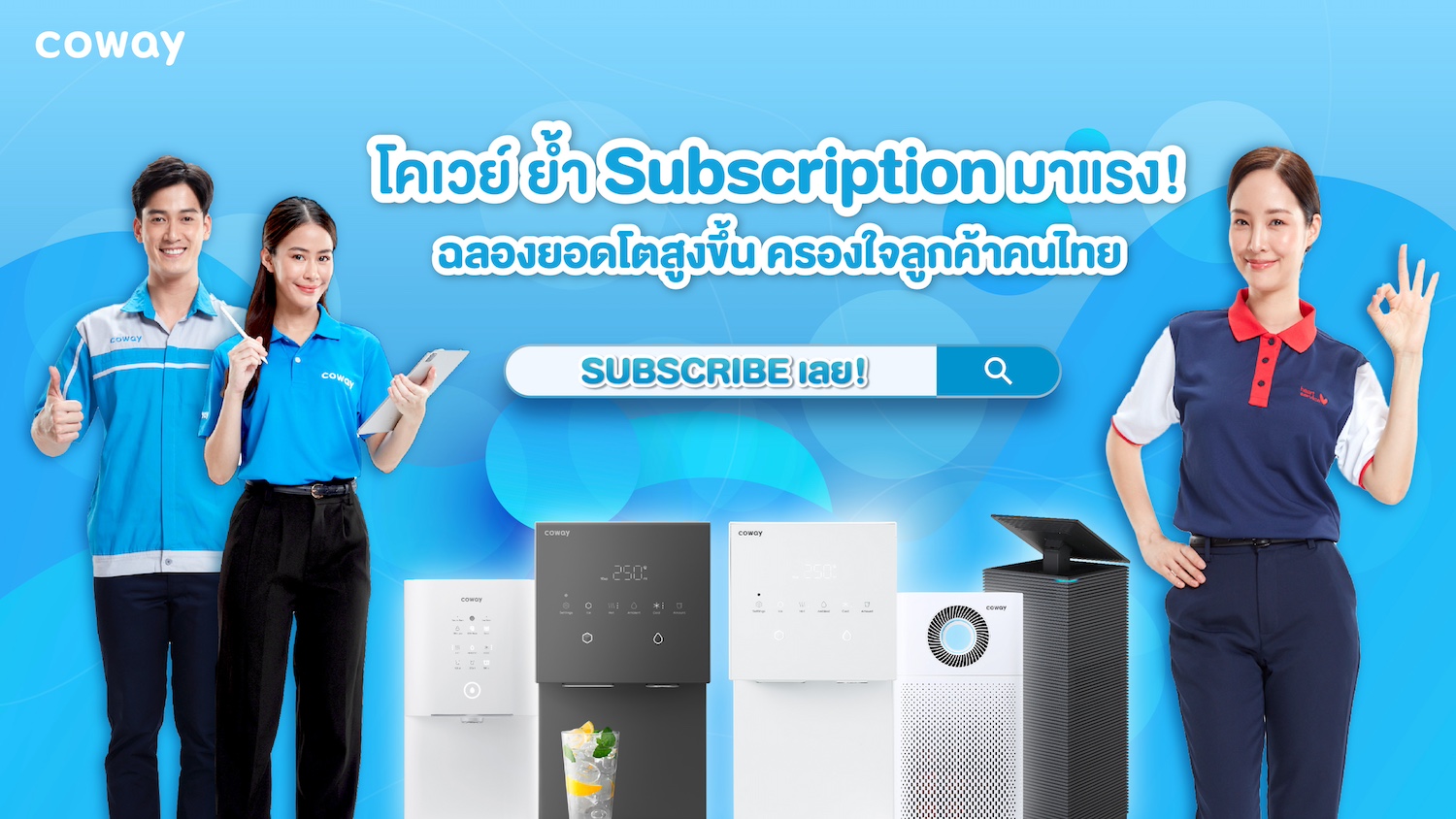 Coway (โคเวย์) แบรนด์เครื่องกรองน้ำและเครื่องฟอกอากาศอันดับ 1 จากประเทศเกาหลีใต้ ประกาศความสำเร็จต่อเนื่องตลอด 3 ปีในการรุกตลาดเครื่องกรองน้ำดื่มในไทย เผยผลประกอบการโตสูงขึ้นทำให้ปัจจุบัน โคเวย์มีบัญชีผู้ใช้งานบริการ Subscription ในไทยมากเพิ่มขึ้นอีกด้วย และยังคงเพิ่มขึ้นอย่างต่อเนื่องจากการแนะนำต่อโดยกลุ่มผู้ใช้งานจริง สำหรับปี 2567 โคเวย์เตรียมแผนจัดอีเวนต์สุดปังมากมาย พร้อมยกทักโปรโมชันสุดคุ้มเพื่อดึงดูดลูกค้าใหม่ตลอดปี การเติบโตของโคเวย์ในปัจจุบัน แสดงให้เห็นว่าผู้บริโภคชาวไทยเริ่มให้ความสนใจบริการรูปแบบนี้มากยิ่งขึ้น